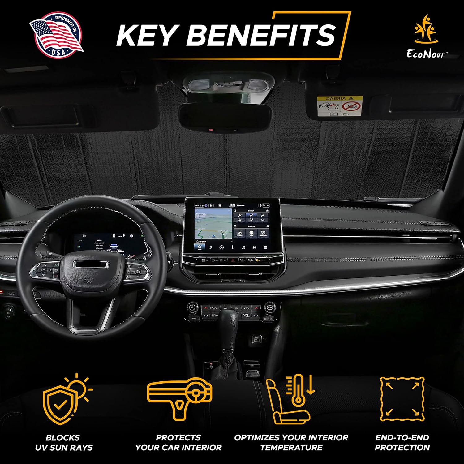 - Comprehensive Protection: EcoNour's Semi Truck Windshield Sun Shade boasts a robust construction featuring "Reflective Aluminum Foil" with dual-bubble layers, ensuring a precise fit around the edges. Car Window Shade effectively blocks UV and sun heat rays while delivering complete privacy for truckers.