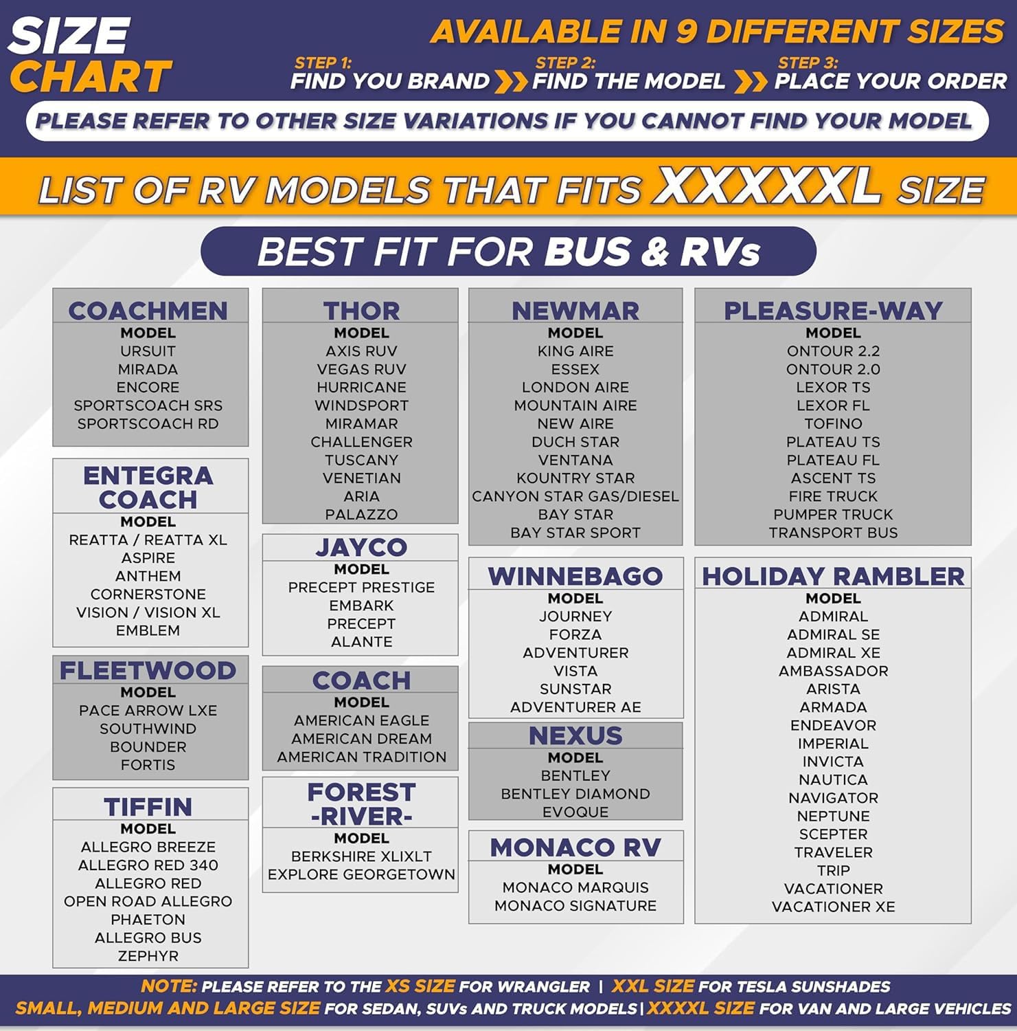 - Wide Range of Sizes for All Vehicles: EcoNour’s car window shades are available in seven size variants, catering to RV buses, trucks, and large SUVs. Refer to our size chart to choose the ideal window sun blocker for your vehicle’s windshield.