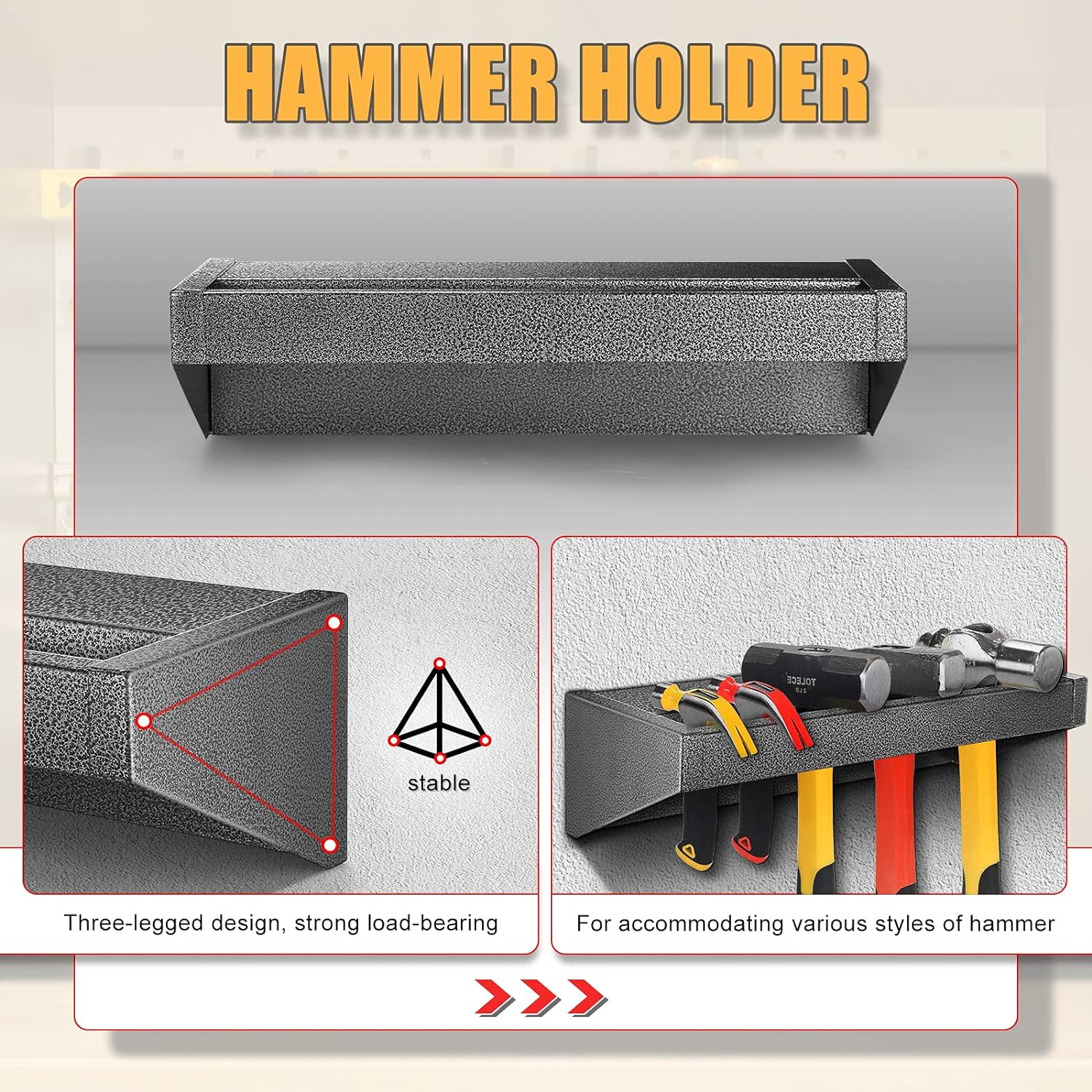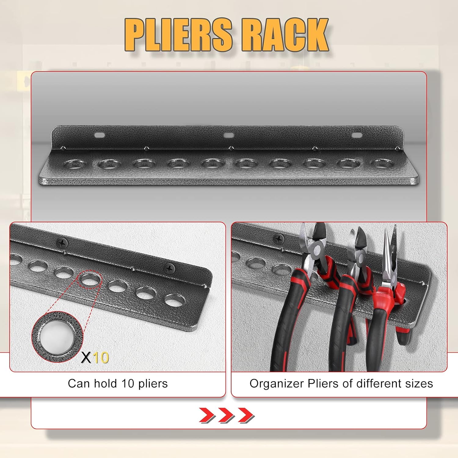 - 【LARGE CAPACITY】 The wall-mounted tool rack set is qualified to hold up to 25pcs screwdrivers, 9 for pliers and 5 hammers. These 3 shelves can accommodate different sizes of screwdrivers, pliers and hammers.