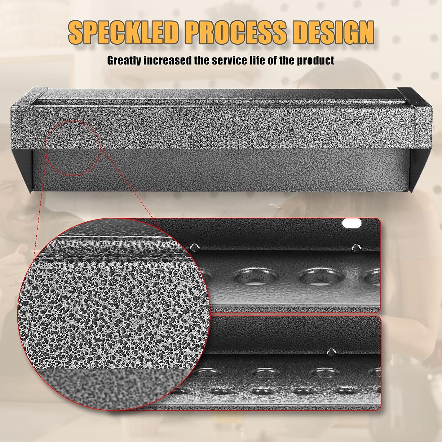 - 【BUILT TO LAST】 Compared with wooden tool storage racks, our metal tool storage racks are made with durable, powder-coated steel, will not rot and crack, rust-proof, and have a strong load-bearing capacity. The surface is treated with a spotted pattern, which is more beautiful.