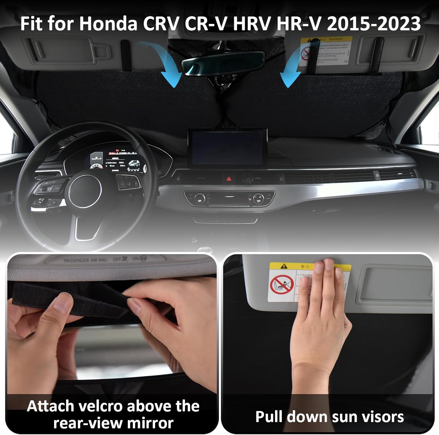 Sunshade for Honda CRV 2017-2022 Sun Shade Fit HR-V CR-V LX EX EX-L, Sport Hybrid, Sport Touring Hybrid SUV Accessories Front Window Shield Sun Visor Protector Foldable Windshield Cover Block UV Rays