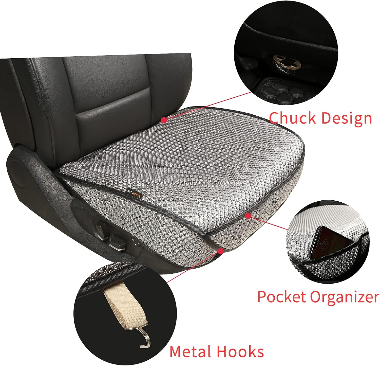 Auto Newer Breathable Universal Four Seasons Car Seat Covers,Luxury Car Seat Cushion ,Protectors for Front Seat Bottoms,Compatible with 95% Vehicles, Fit for Cars Truck SUV (Grey1PCS)