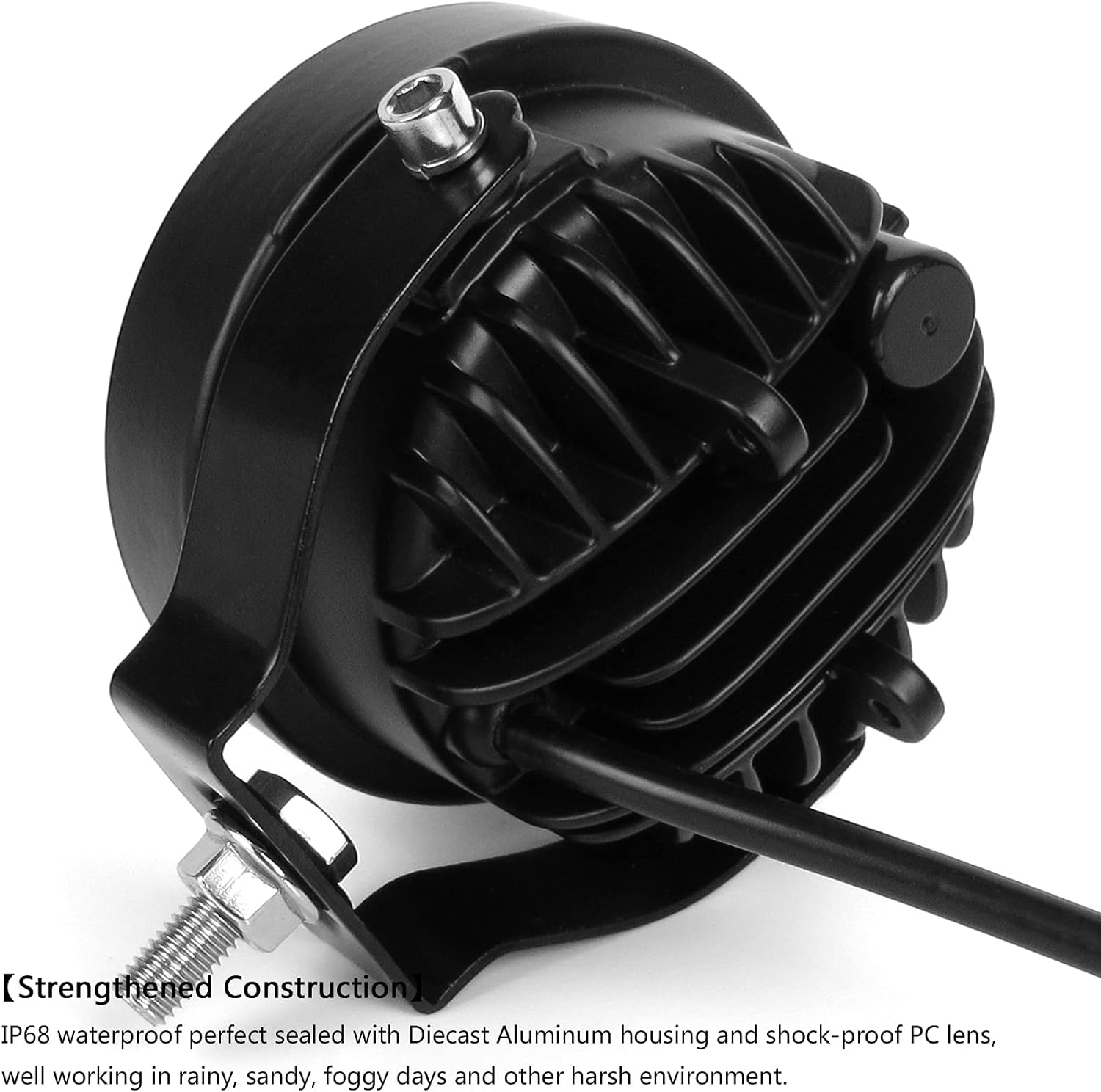 - 【SUPER BRIGHTNESS】 Compare with the same size another work light , this kind light have the most biggest real wattage,advanced High Power Led Chip give out bright and white ray for clear visibility.special designed lamp cup leads to wider illumination range, allowing you to see the left and right side clearly.