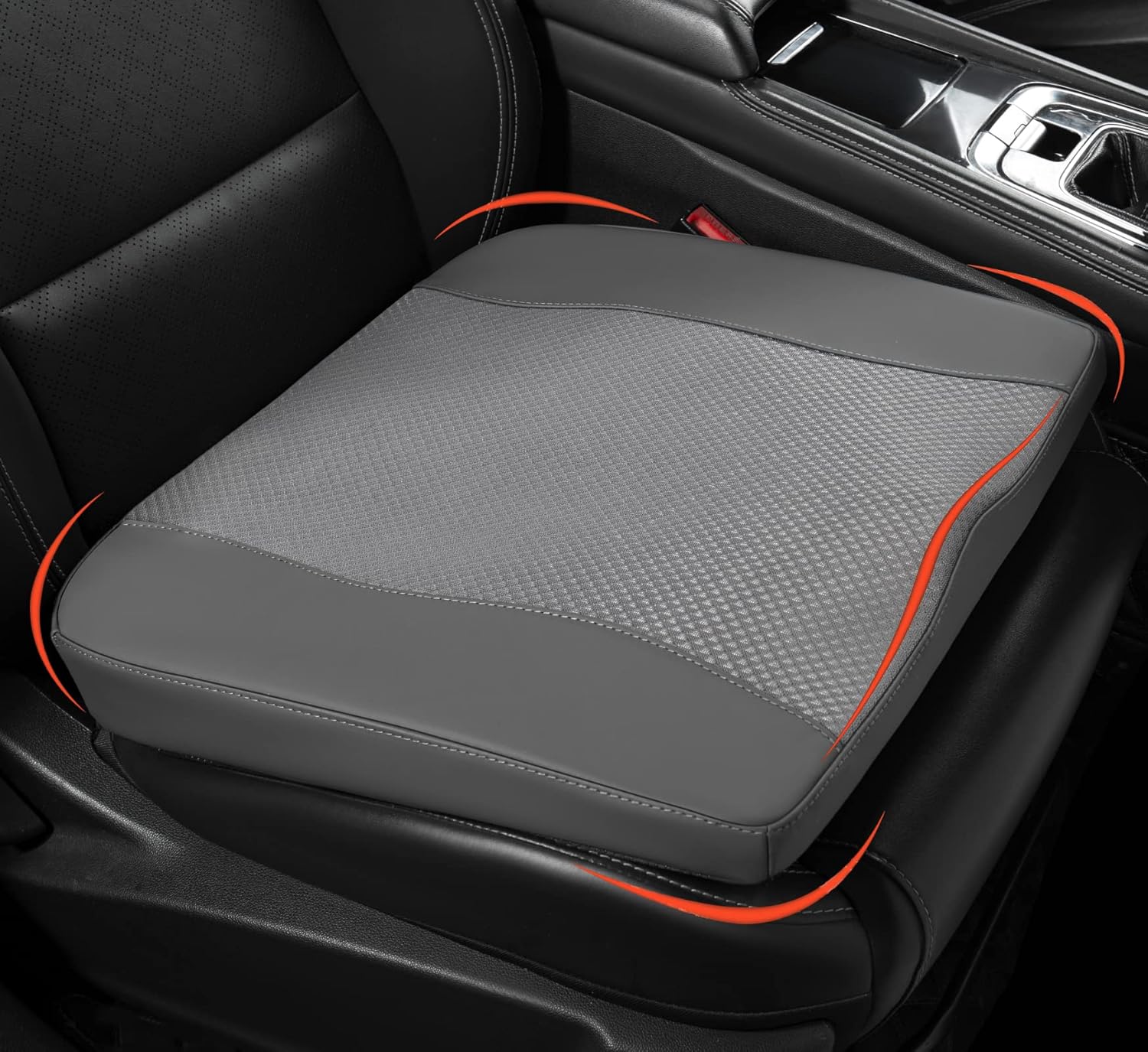 - ADDS HEIGHT BY 2.5 INCHES — Allows for increased vision of the front of your car and the road thanks to the car cushions for driving providing an additional 2.5” in height. Non-slip base keeps the car cushion firmly in place