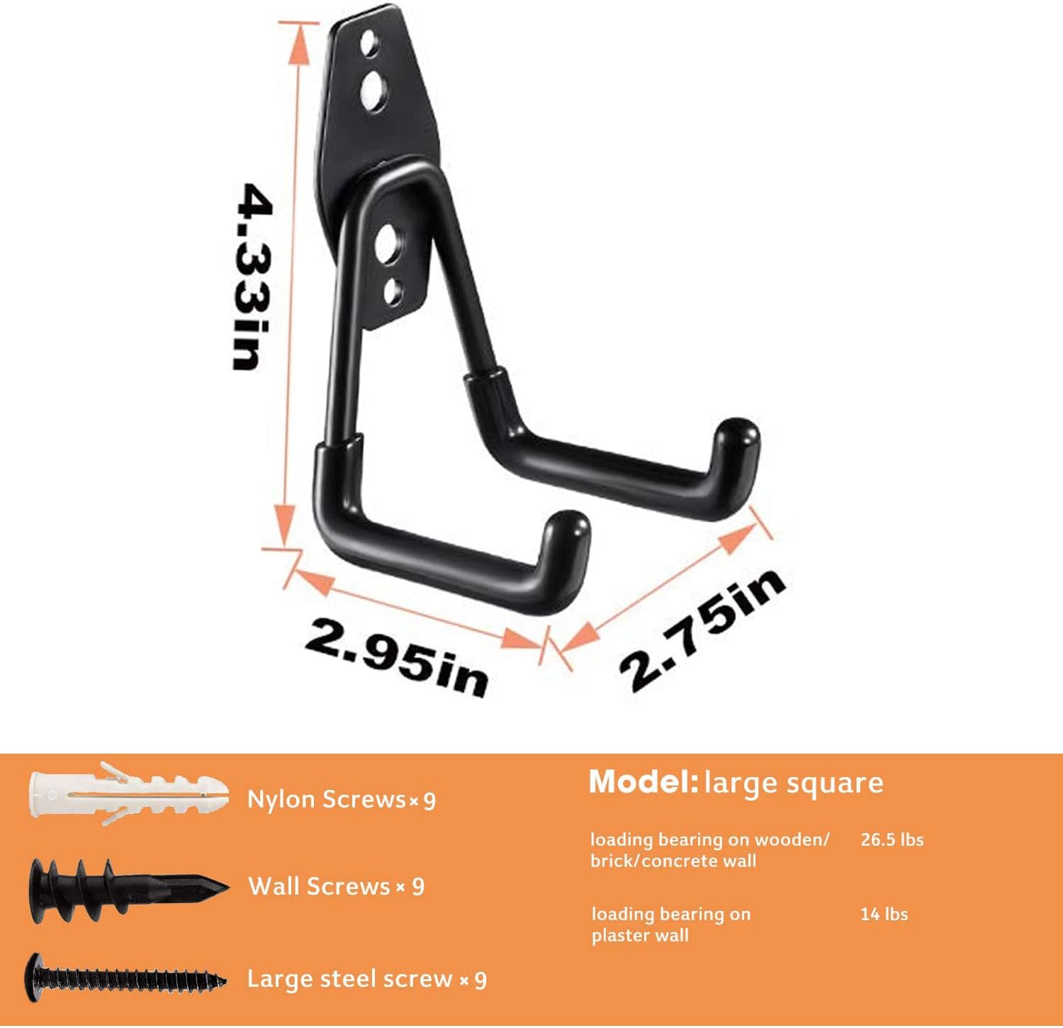 - 【 Package Included】 Package include 4 pack 2.8 inch garage hooks, 9 pcs of wall screws, 9 pcs of expansion screw and 9 pcs wall plugs.