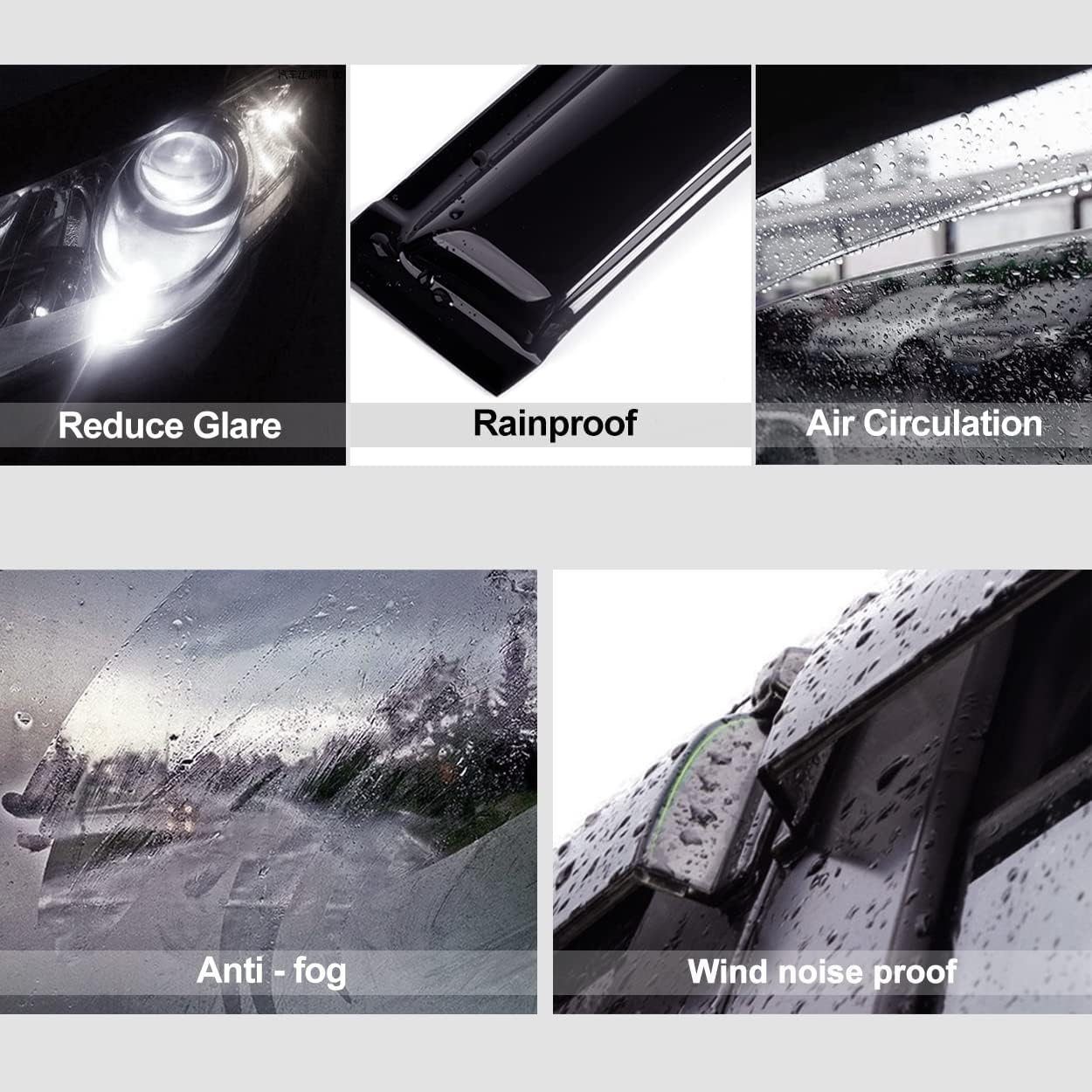 - MAKE DRIVING SAFE AND SAVING: Our Rain Guards help improve ventilation inside and outside to reduce mirror and window fogging keep sight clearly make rides safe.While increasing air circulation allow interior heat to escape, preventing the need for air conditioning and thereby saving fuel.
