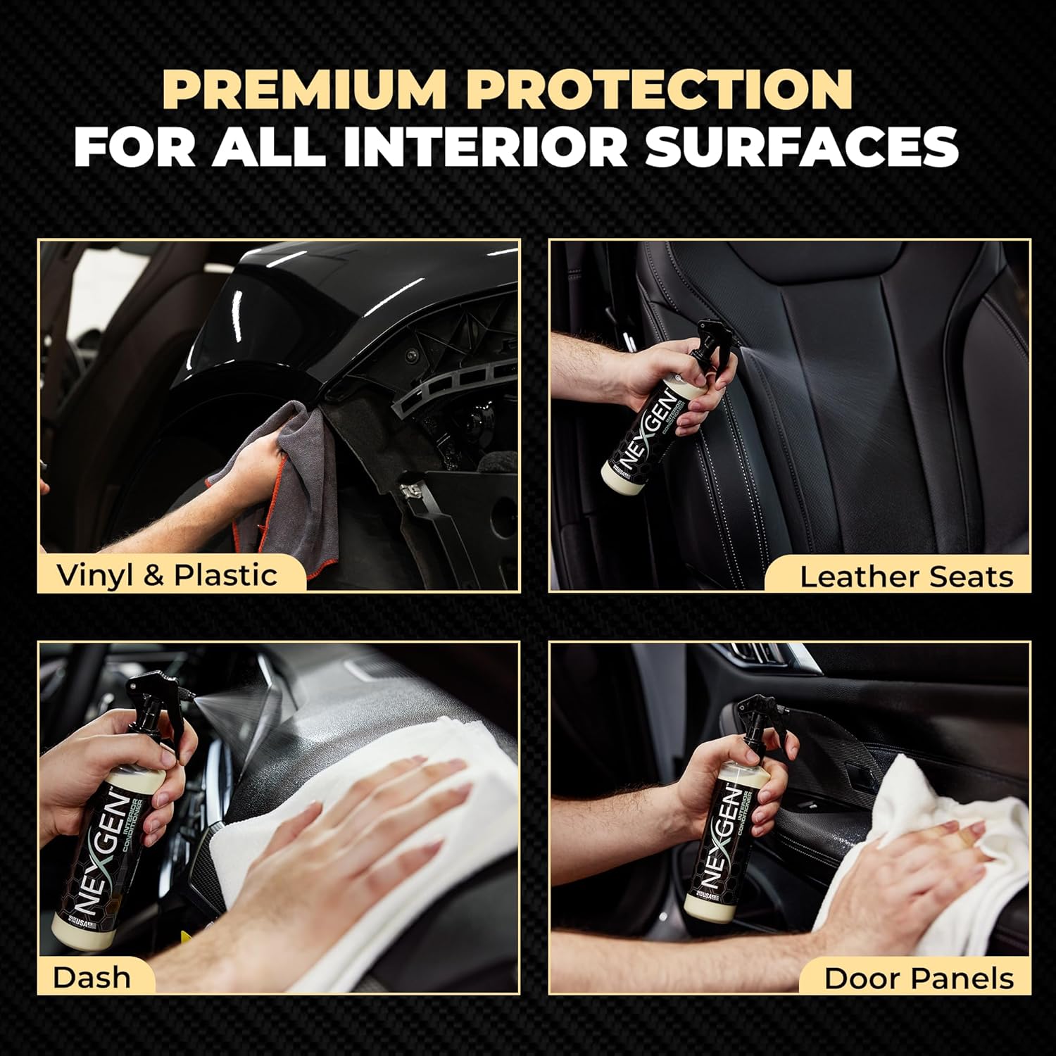 Nexgen Interior Conditioner (16oz) - Non-Greasy, UV-Blocking Formula - Fresh Leather Scent - On-The-Go Car Detailing - Car Cleaning Supplies - for Car Seats, Dashboards, Door Panels, & More