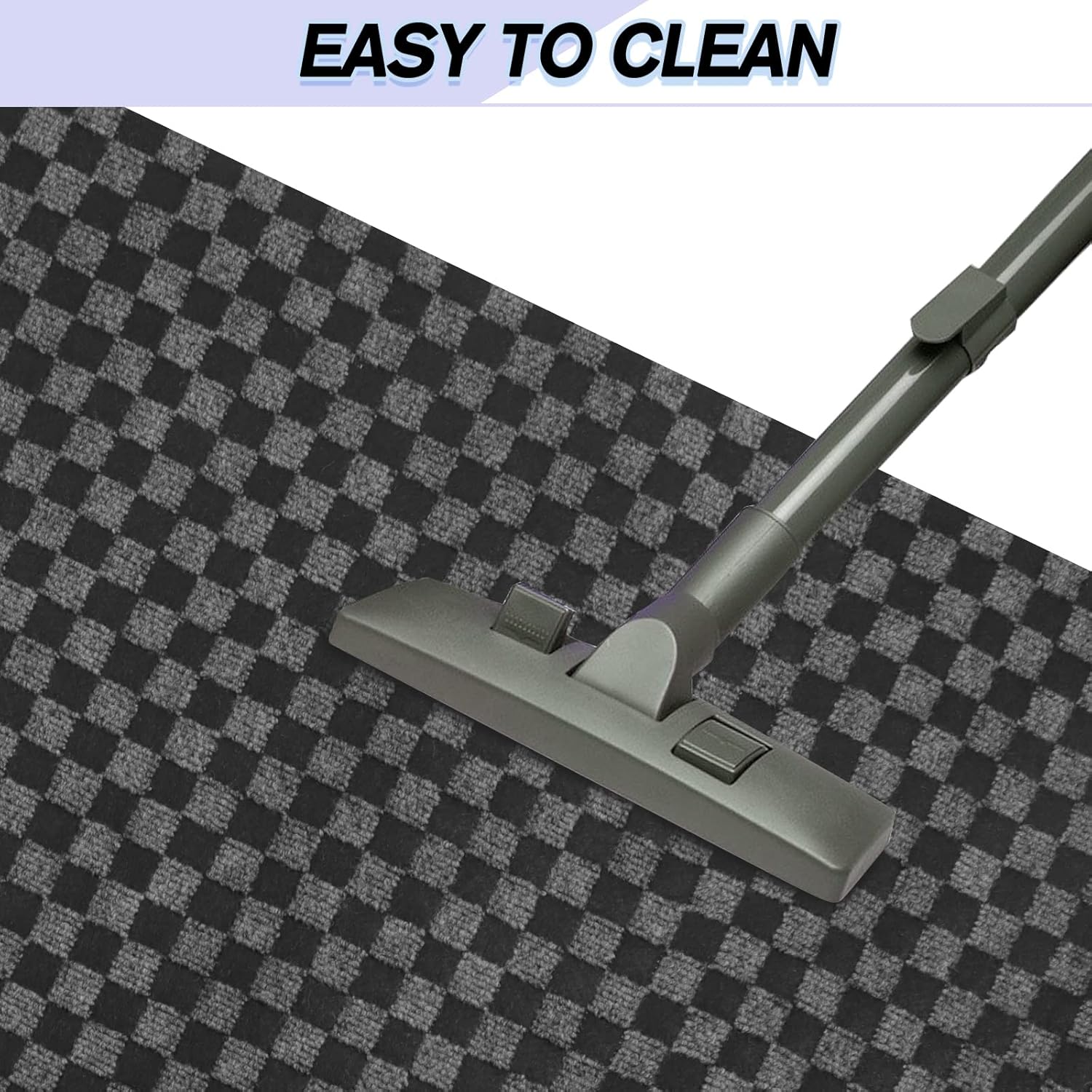 Custom Size Backed Non-Slip Area Rugs Runner, Easy Clean, Waterproof Runner Rugs for Hallway Entryway, Kitchen, Laundry, 2FT x 44FT, Gray Checkered