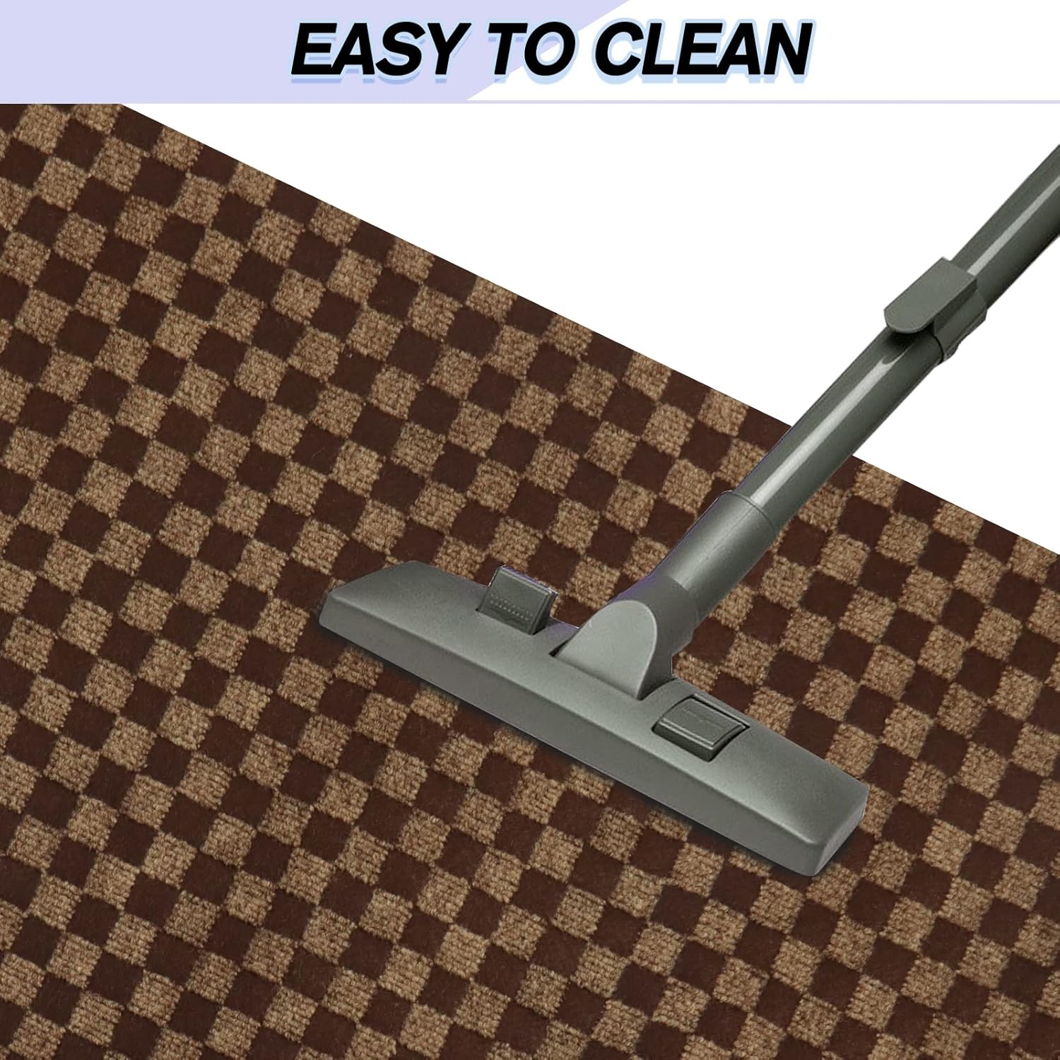 Custom Size Backed Non-Slip Area Rugs Runner, Easy Clean, Waterproof Runner Rugs for Hallway Entryway, Kitchen, Laundry, 3FT x 16FT, Brown Checkered