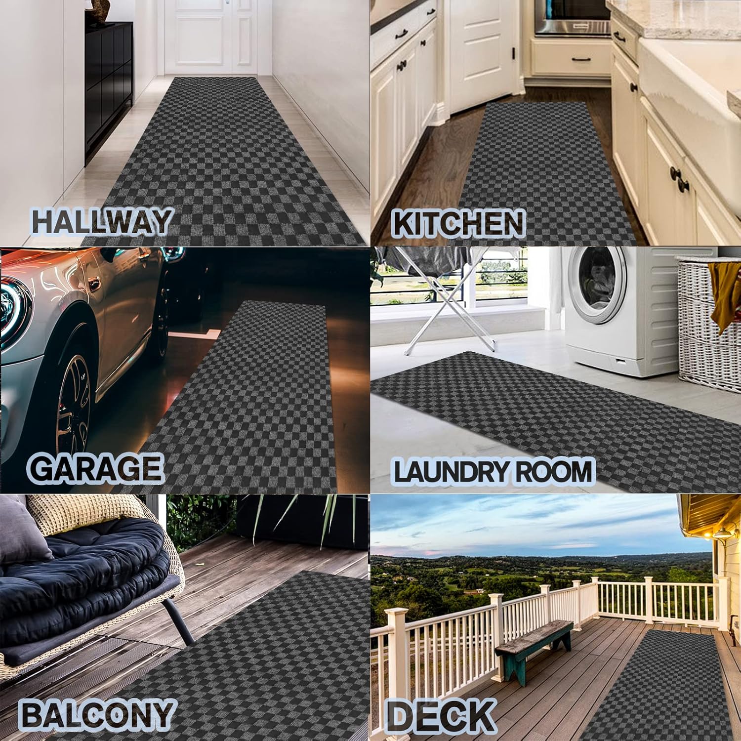 Custom Size Backed Non-Slip Area Rugs Runner, Easy Clean, Waterproof Runner Rugs for Hallway Entryway, Kitchen, Laundry, 3FT x 8FT, Gray Checkered