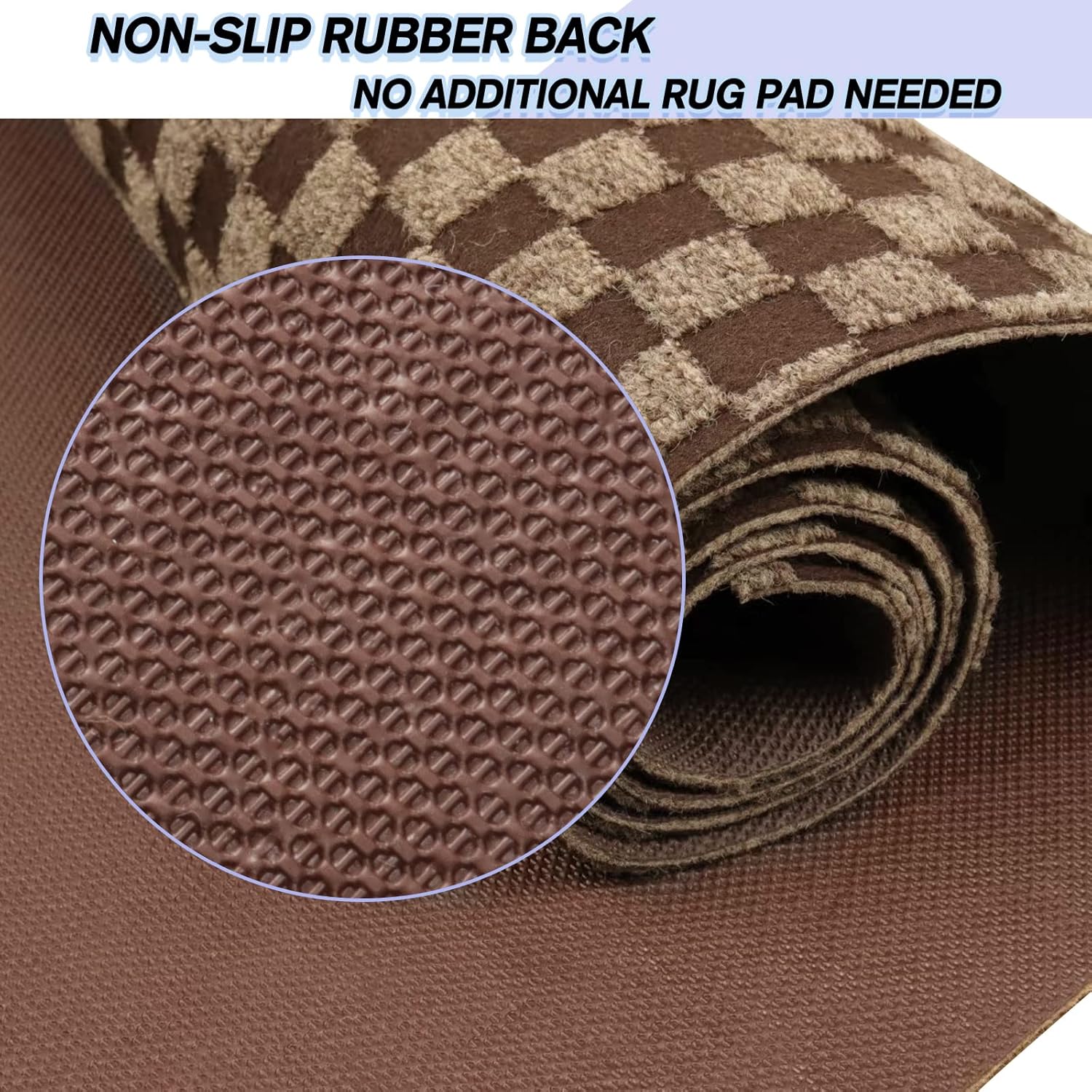 Custom Size Backed Non-Slip Area Rugs Runner, Easy Clean, Waterproof Runner Rugs for Hallway Entryway, Kitchen, Laundry, 3FT x 69FT, Brown Checkered