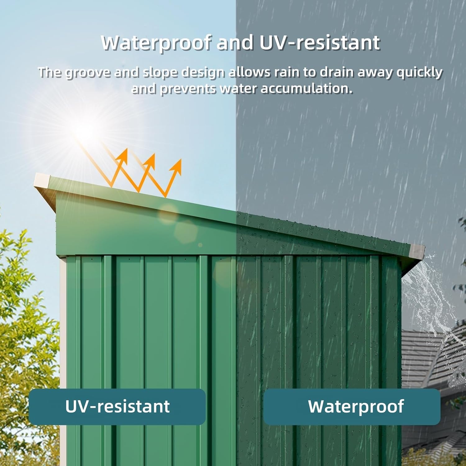 Bealife 5' x 3' Outdoor Storage Shed Clearance, Metal Outdoor Storage Cabinet with Single Lockable Door, Waterproof Tool Shed, Backyard Shed for Garden, Patio and Lawn(Green)