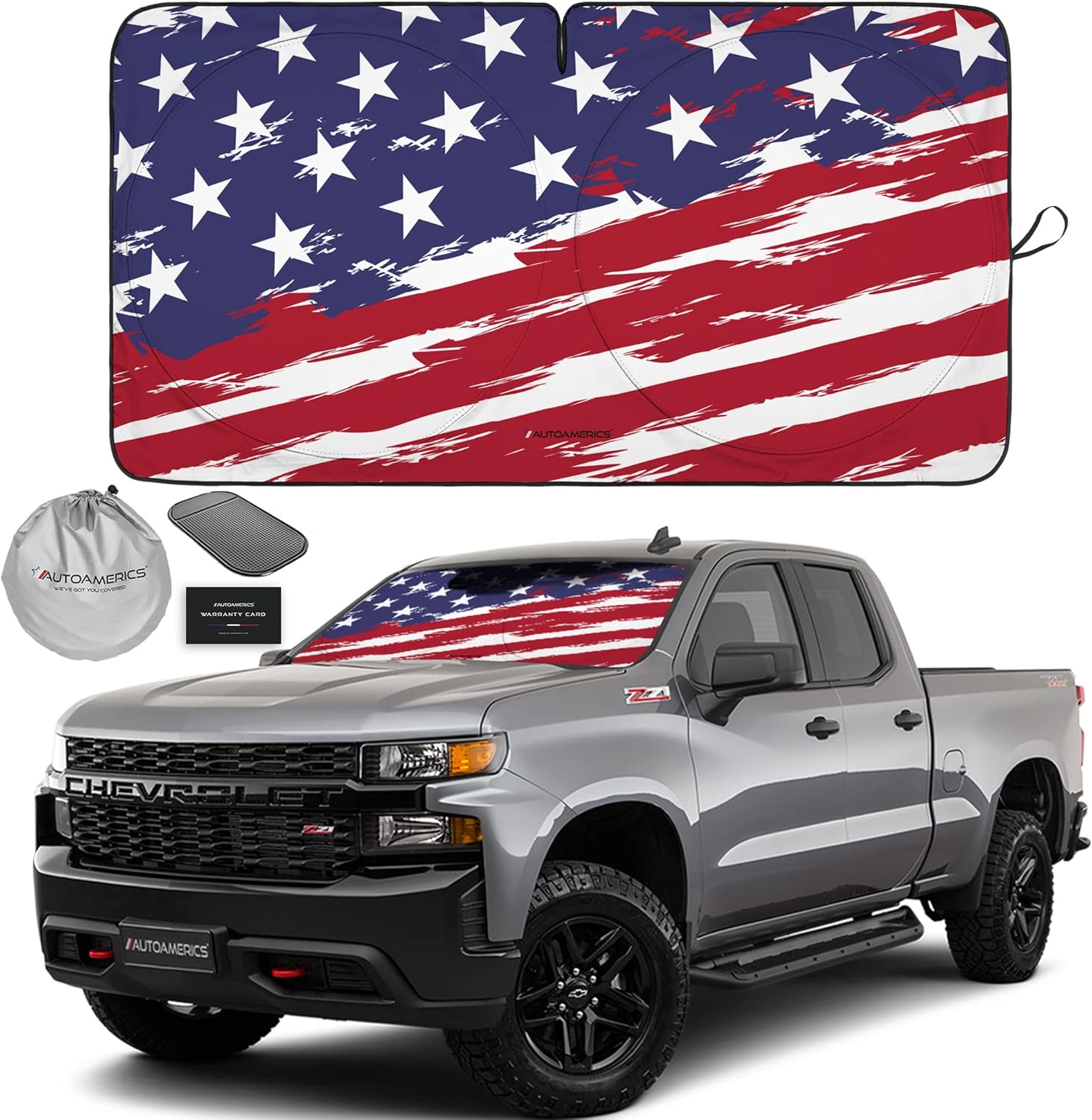 - Market-leading sun protection with an eye-catching American flag design. The new Autoamerics 1 piece USA windshield sunshades combines unbeatable sun reflecting and heat blocking capabilities. We achieve our market-leading protective performance by combining the finest reflective materials and innovative design to reflect the most scorching hot UV rays and heat.