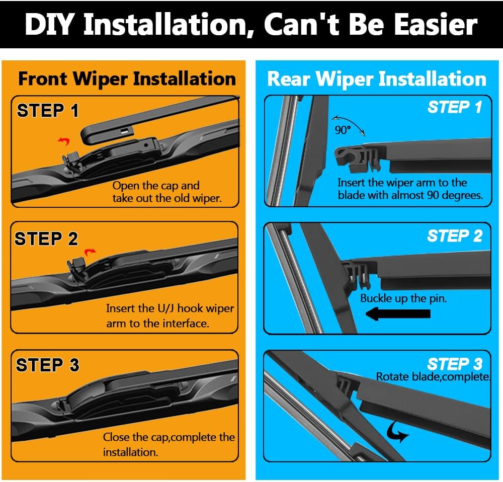 - EASY-TO-INSTALL: Quick and easy to install. fit perfect to your car, like the original parts. It’s installed to the wiper arm by means of J/H.