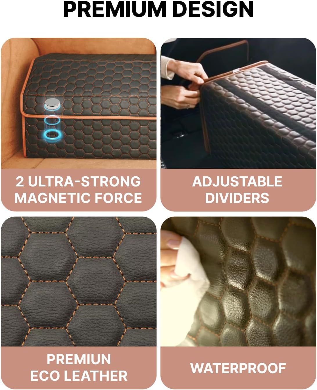 - GIFT-READY STYLE. A sleek choice for gifts, gift ideas, or men’s car gifts. Elegant black-brown finish with hand-stitched detailing complements any car interior while keeping the trunk organized year-round.