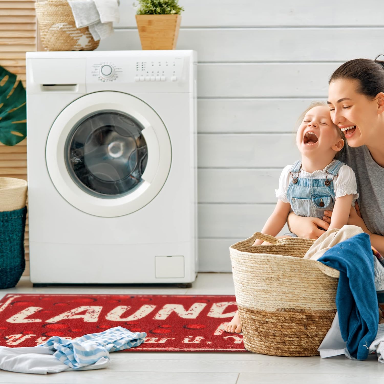 - [TRENDY STYLE]: This fun rug features a laundry print design adding color and enhancing the look of your home. Its timeless design can be integrated into a variety of home décor styles.