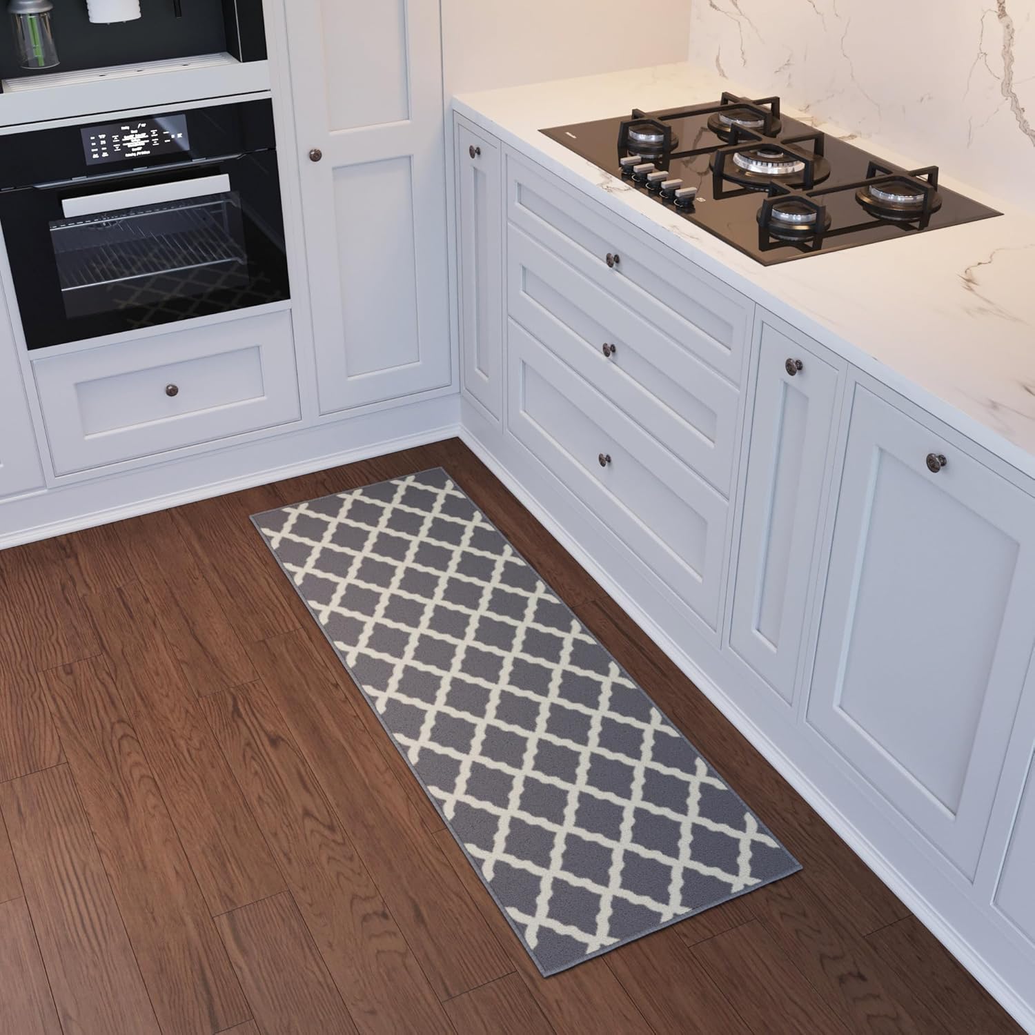 Ottomanson Hallway Runner Rug 20" x 59" Non Slip Trellis Area Rugs Easy to Clean Laundry Rug Runner Durable & Pet Friendly Floor Carpet Runners for Hallways Entryway Living Room Kitchen, Gray