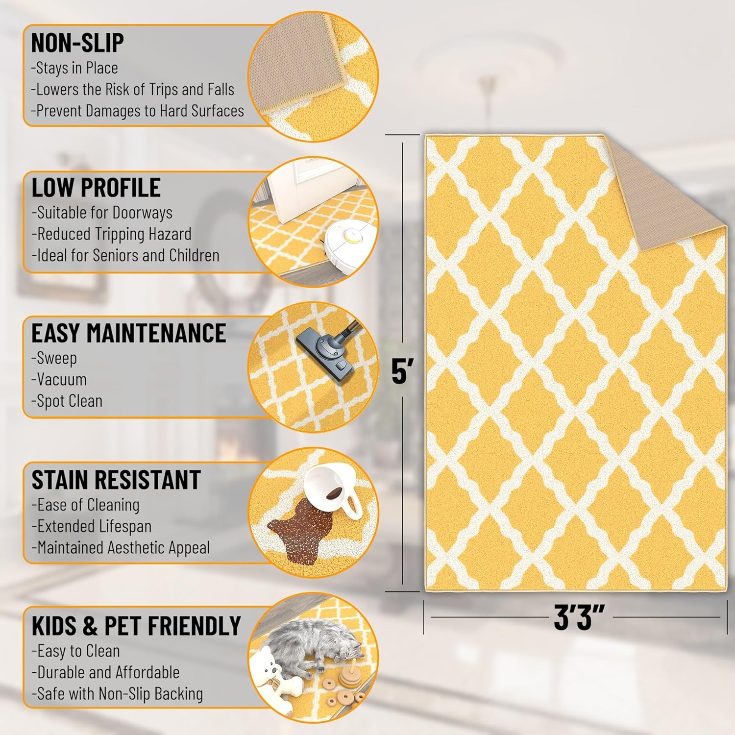 - [Stain-Resistant and Easy to Clean]: Vacuum, shake out, or spot clean for effortless upkeep. Great for mess-prone areas like kitchens and mudrooms.