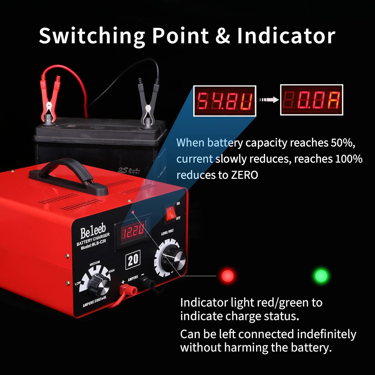 C20 Adjustable Battery Charger 12V 24V 36V 48V, 12A Pulses of High-Voltage Battery Desulfator Maintainer with Smart Chip for Lead-Acid LiFePO4 Lithium Batteries BLB-C20