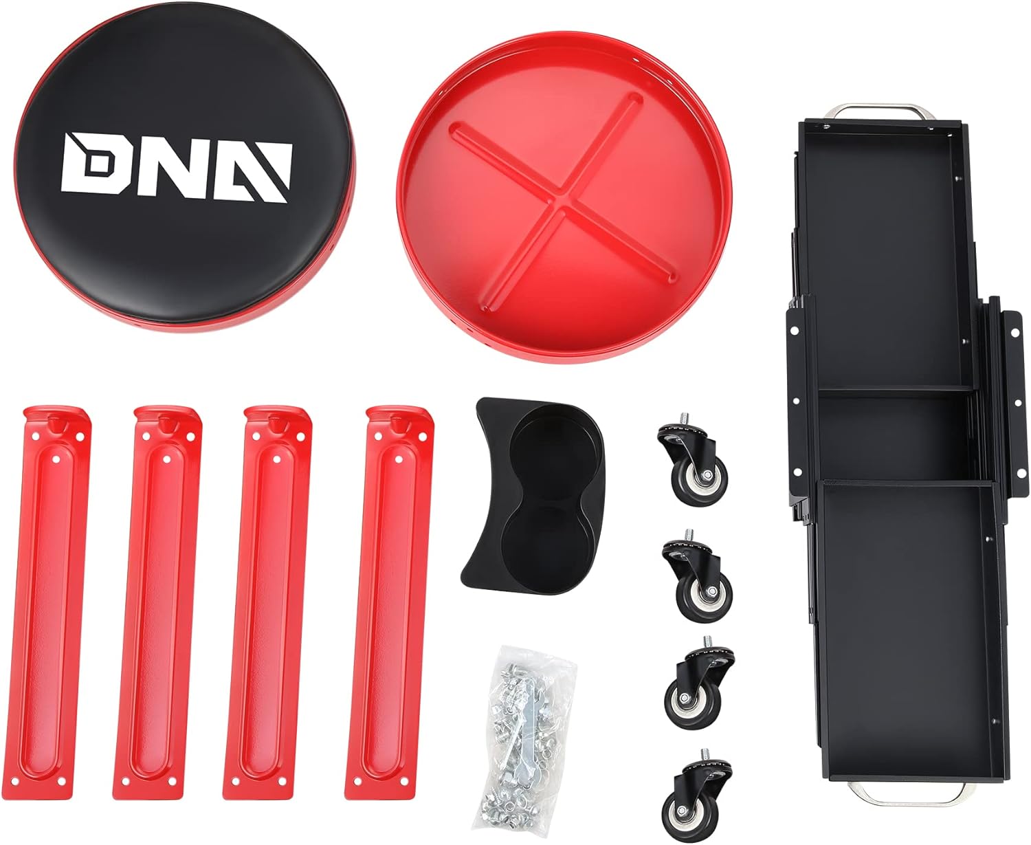 DNA Motoring TOOLS-00197 Round Mechanics Roller Seat Creeper Stool With Padded Cushion, Tool Storage Drawer & Tray, 300 Lbs Max Weight Capacity