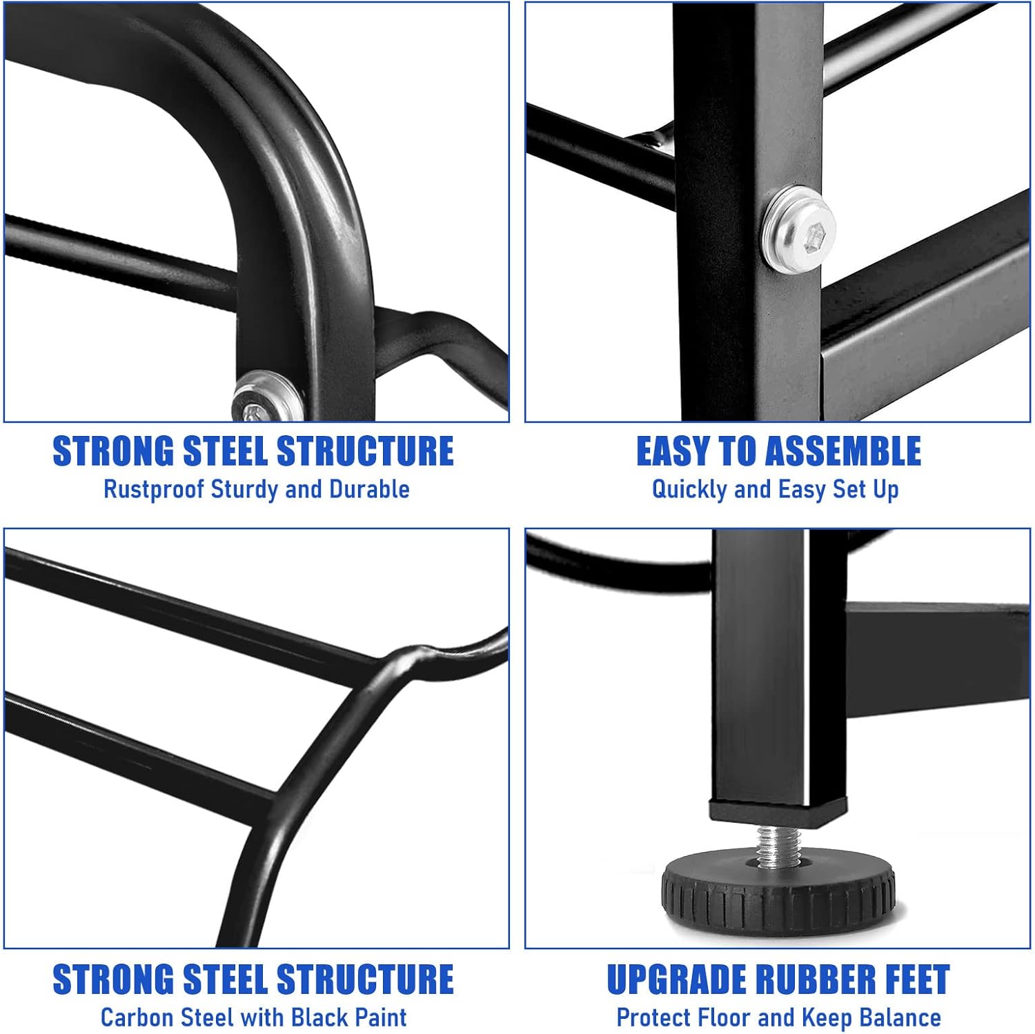 - 【Safety and Long-Lasting】This water bottle rack is made of premium steel that is both long-lasting and steady while guaranteeing a long product lifespan. The surface is covered with refined paint that is waterproof, moisture-proof, and rust-proof. Upgraded bigger X-shaped rear frame to reinforce the stability.
