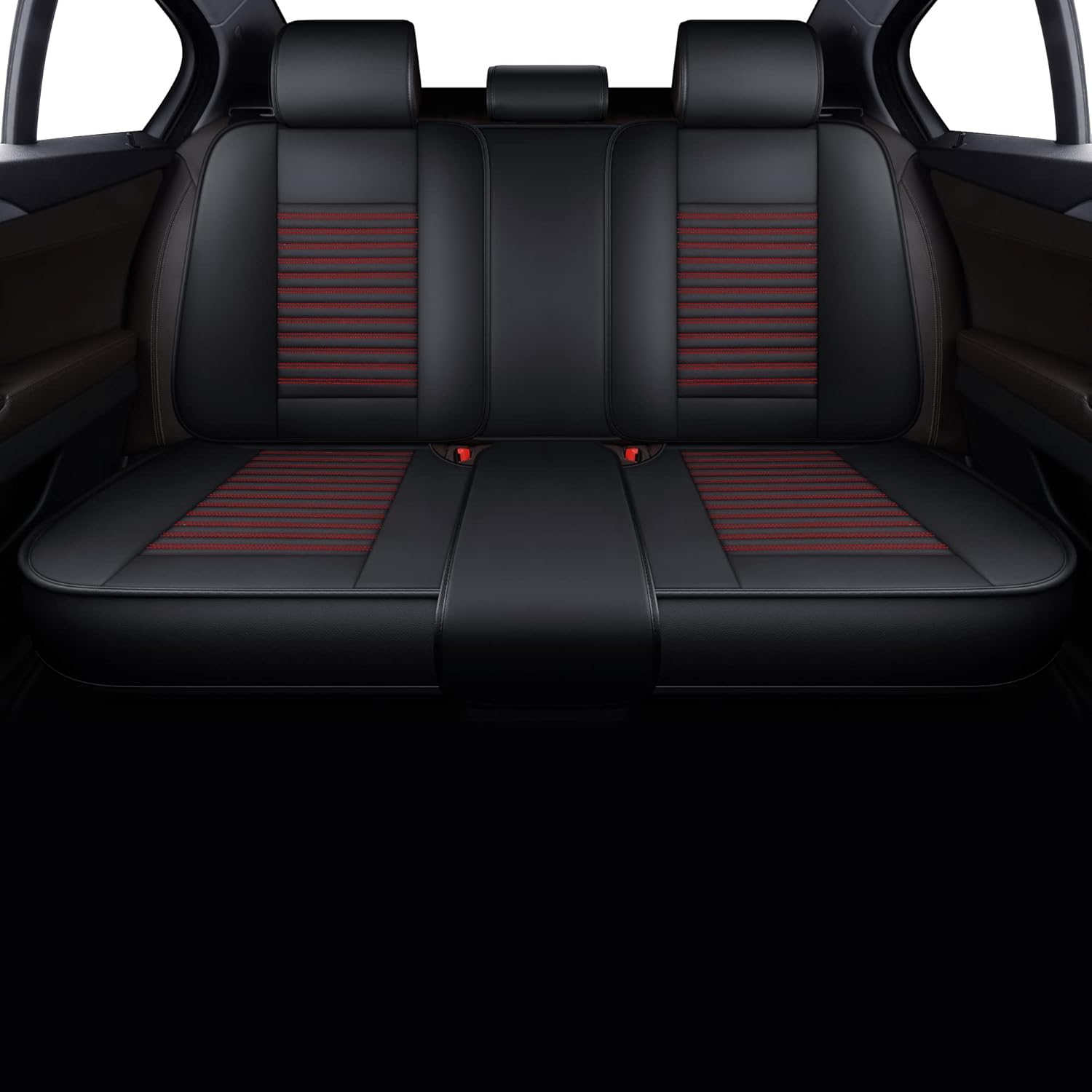 LINGVIDO Leather Car Seat Covers,Breathable and Waterproof Faux Leather Automotive Seat Covers for Cars SUV Pick-up Truck Sedan,Universal Anti-Slip Driver Seat Cover with Backrest (Rear Seat, Red)
