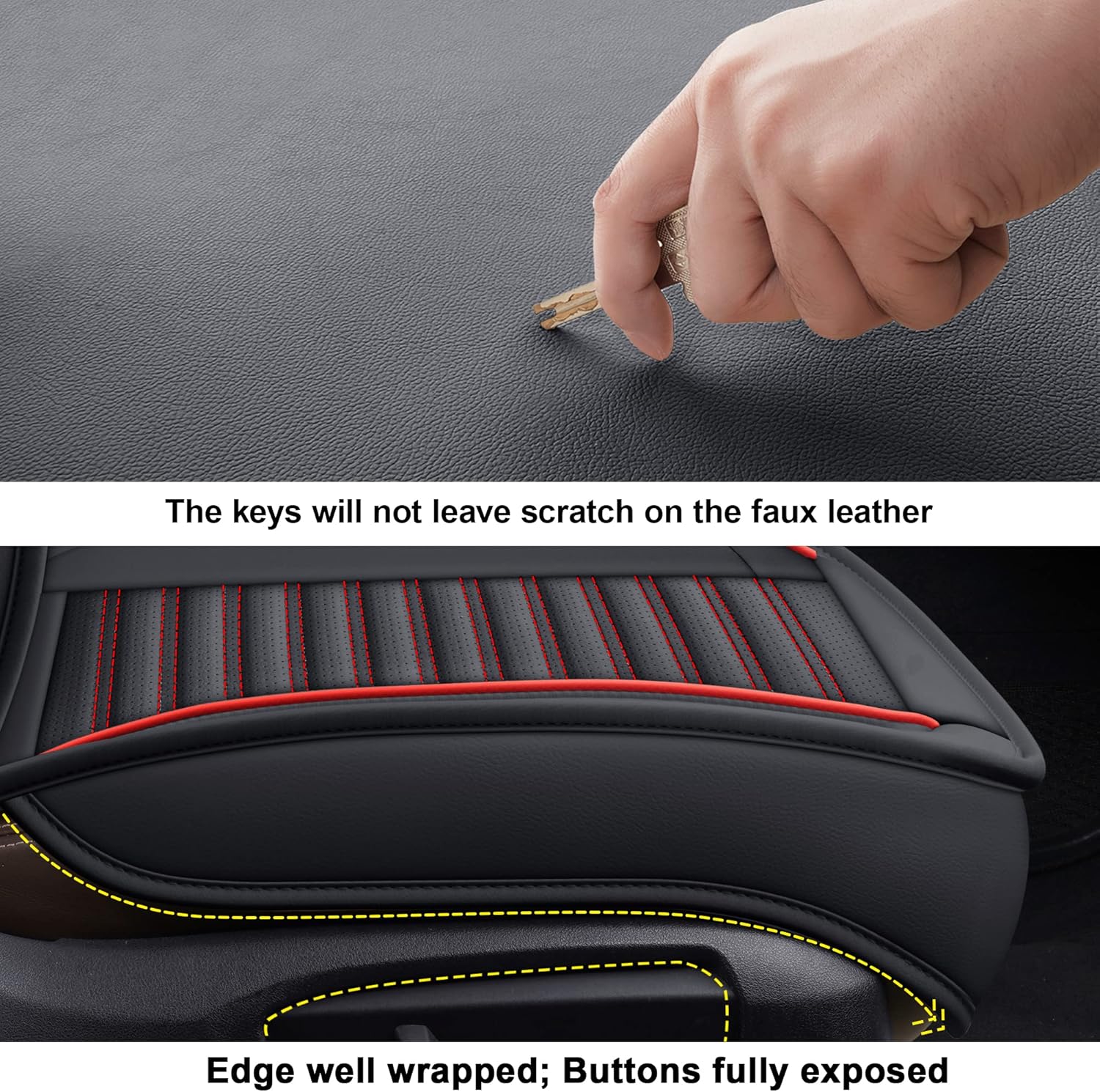 - [HIGH-QUALITY MATERIAL] Surface material made of high quality faux leather which is soft, durable and waterproof,delicacy perforations bring breathable comfort experience.The middle part use high rebound sponge,create top resilience for maximum comfort during your drive. Non-slip fabric is used on the bottom layer,keep the covers in place so you can get in and out worry free.