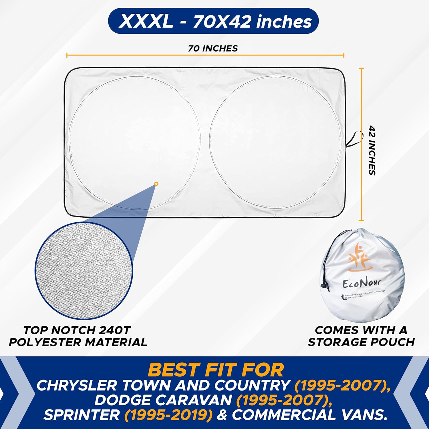 EcoNour Foldable Car Windshield Sunshade | Sun Shade for Car Windows Blocks UV Rays and Keeps The Heat Out | Foldable Essential Accessory for Enhanced Comfort XXX-Large (70 x 42 inches)