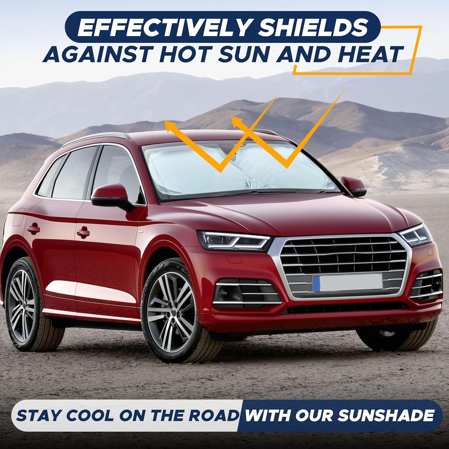 - Easy to Use and Fold: Our versatile windshield sunshade pops open quickly, installs in seconds, and folds into the included pouch. This convenient car sunshades for windshield solution is ideal for MPVs and vans.