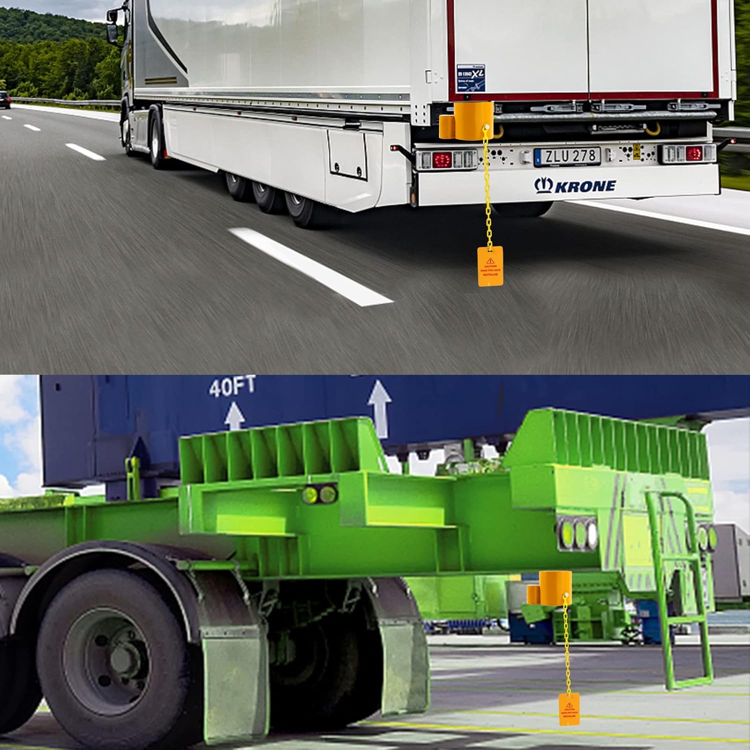 - This king pin lock is designed to be bright yellow, has strong visible warning, so you could notice if it is still stay in place, each lock includes a fluorescent warning tag on 12" chain, warning information on each label for extra safety.