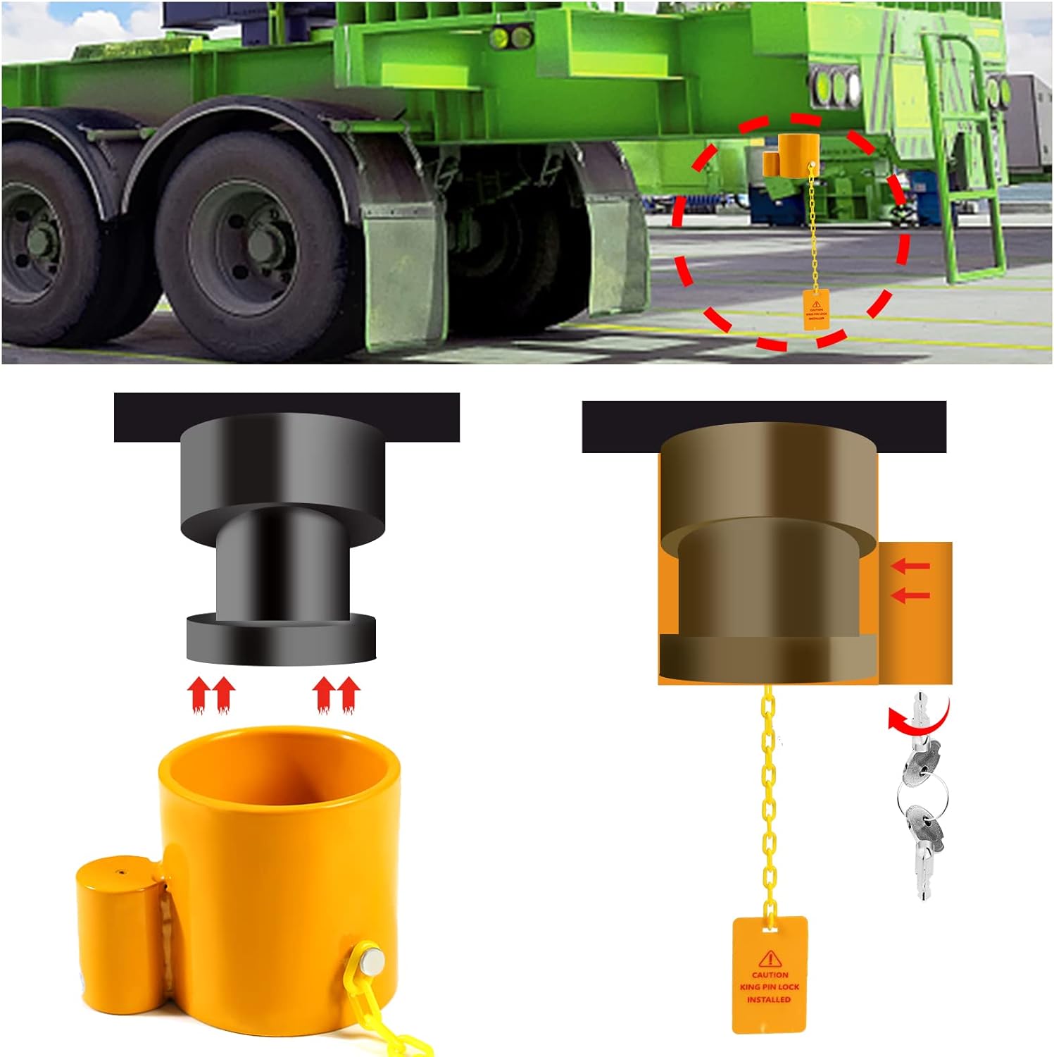 - Heavy duty steel king pin lock ideal for rvs, container trailers and campers, widely used by trucking companies, rv dealers or fleet drivers.