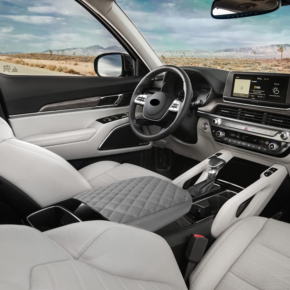 sportuli Center Console Cover Anti-Scratch Leather Armrest Cushion Compatible with 2020 2021 2022 2023 2024 Kia Telluride accessories (Gray)