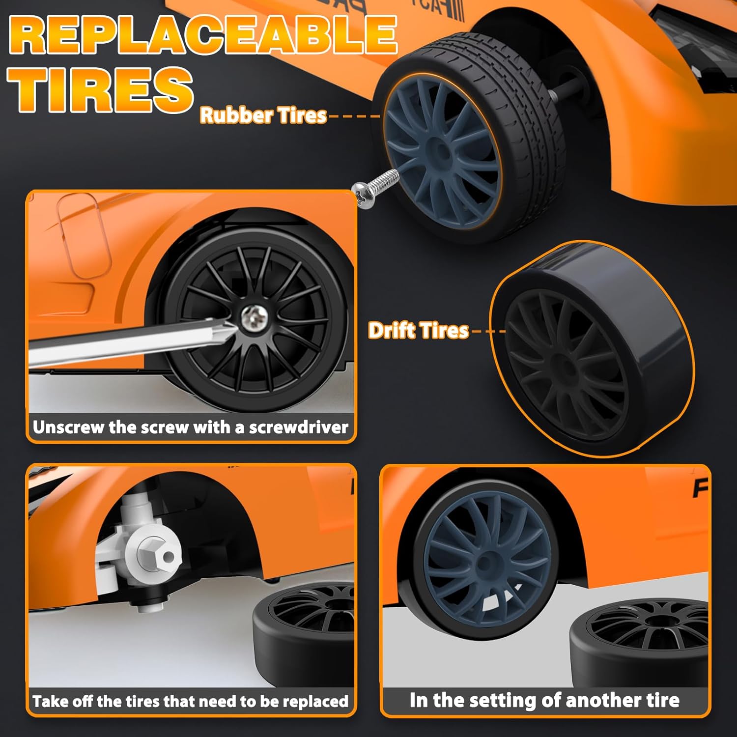 RC Drift Car 1/24 2.4GHz Remote Control Car 4WD High Speed Drifting RC Cars with LED Light and Drift Tires Racing Toy Cars for Boys Girls Kids Adults (Orange)