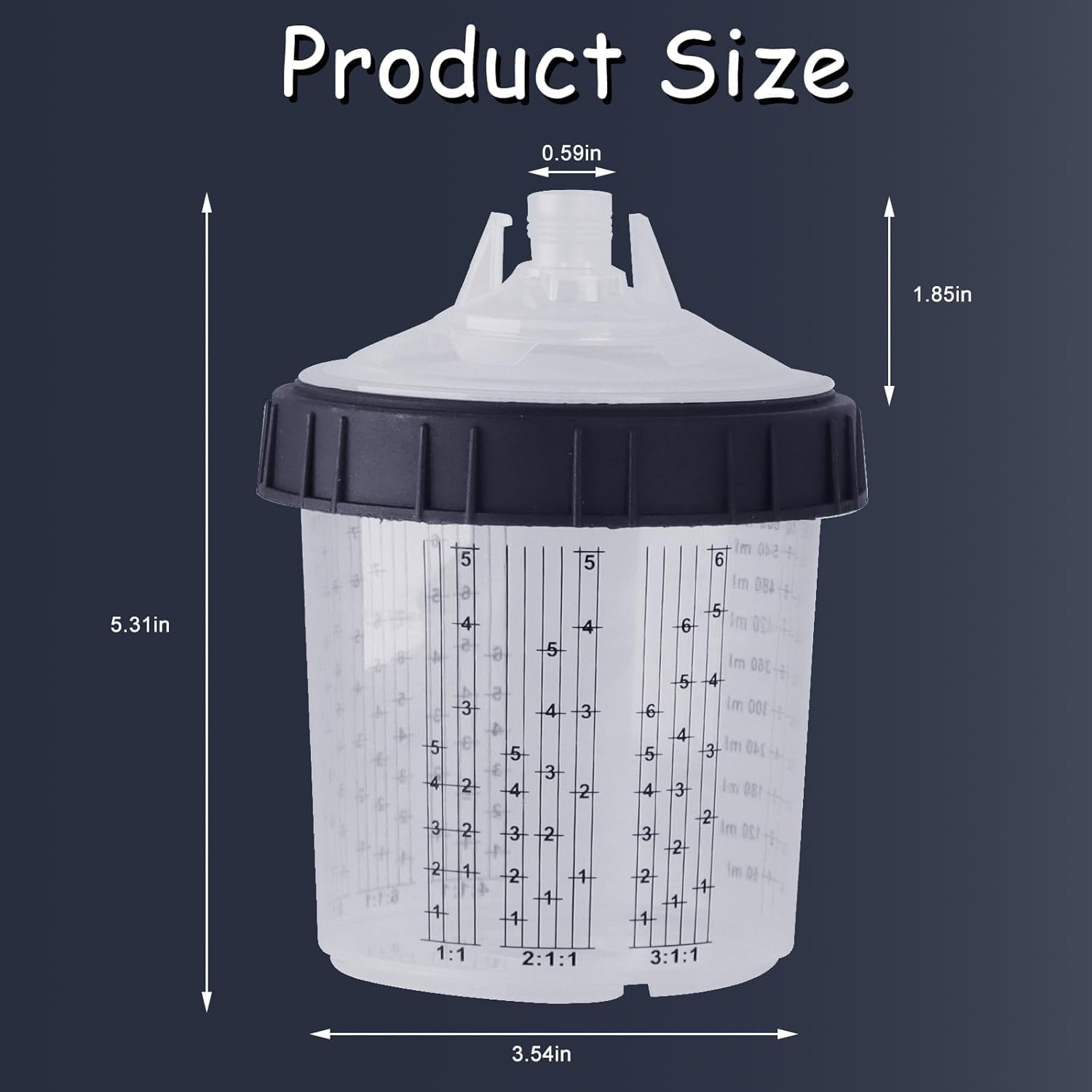 - Save Costs: Our hvlp paint mixing cup can be store safely with disposable lids and cup sealing plugs. If there is any leftover material after spraying, you can store it in the inner cup for next use without paint waste.