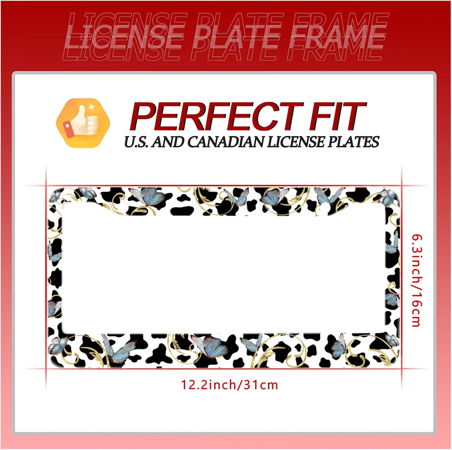 Personalise Cows and Butterfly License Plate Frames Cute Leopard License Plate Frame Car Universal Stainless Steel Accessories Cars Decor 2 Holes Screws Fits Standard US Vehicles Size 12.2 x 6 Inches