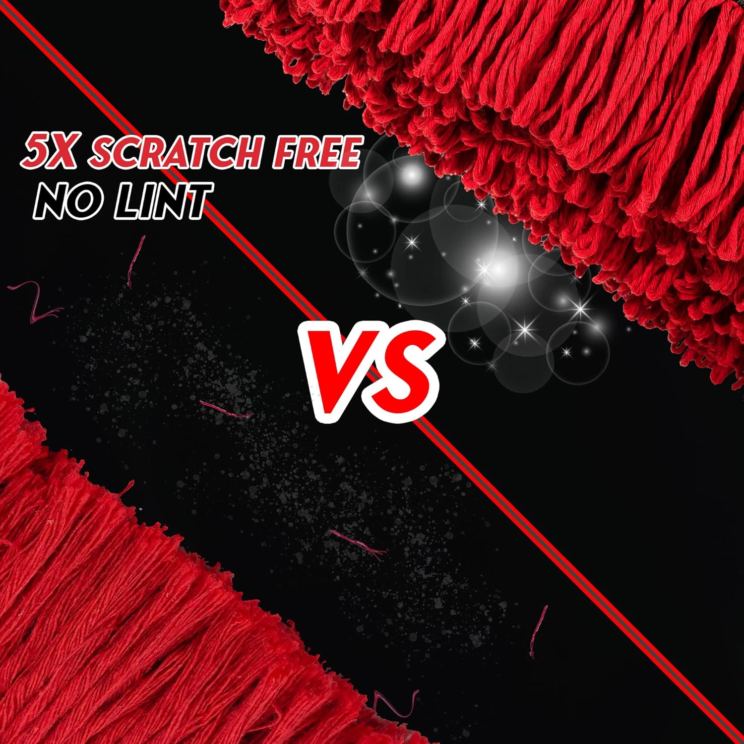 - 【5X SCRATH FREE】Soft comfortable natural 100% cotton fiber thread is always gentle on paint, glass, plastic, chrome, metal and other surfaces and will not scratch the finish, leaving no lint on its looped ends after use the ultimate car dust dash duster cleaning brush.