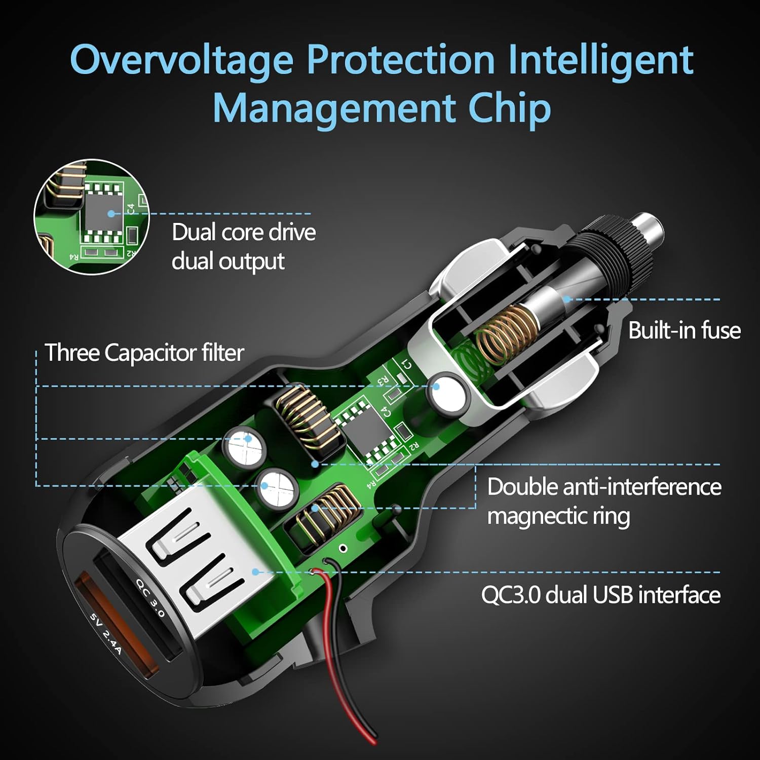 - 【New upgrade Radar Detector Power Cord】:This Radar Detector Power Cord Quick charger with QC3.0 dual USB interface and can be used as two USB port car chargers. with one Radar Detector Power Cord 6.5ft,DC3.5 interface