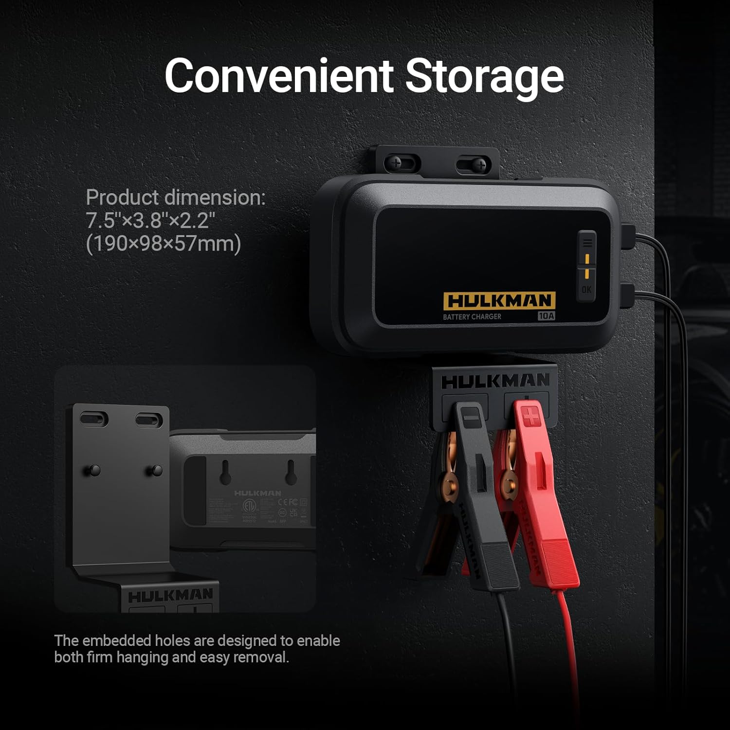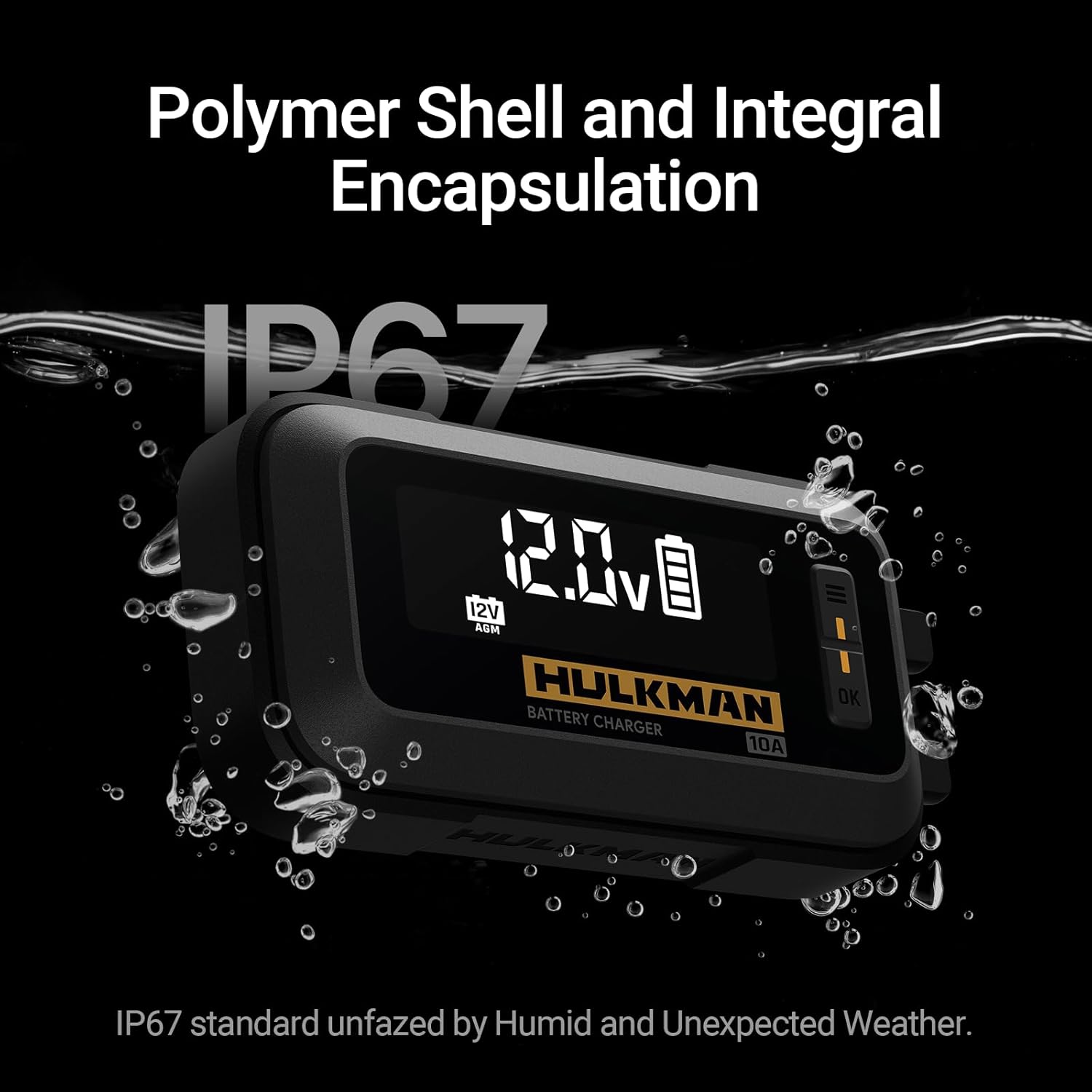 Hulkman Sigma 10, 10A 12V/6V Car Battery Charger for 30-240Ah, Battery Maintainer and Float Charger, Trickle Charger with Desulfator for Lead-Acid, LiFePO4 Battery, Automobile, Truck, Motorcycle, RV