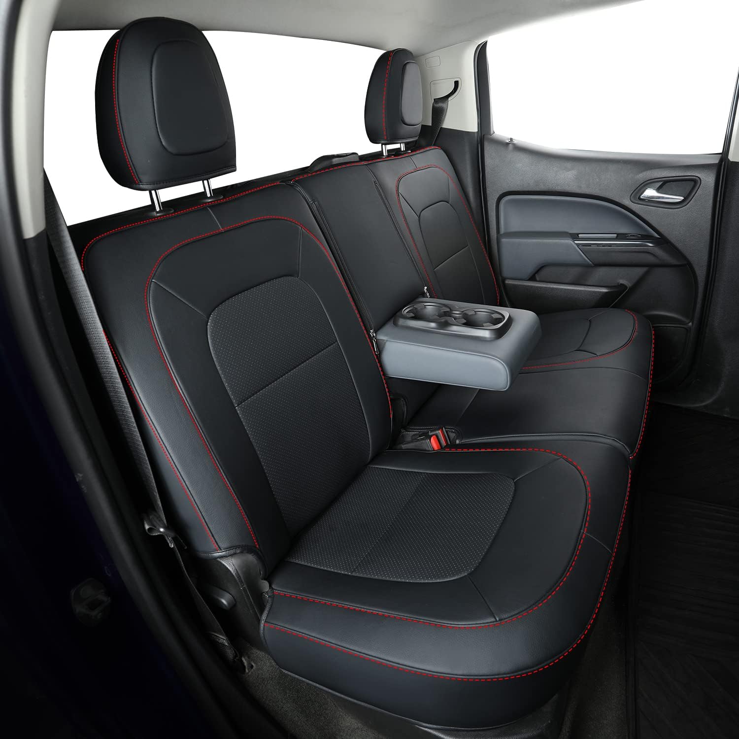 LUCKYMAN CLUB Chevy Colorado Seat Covers, fit for 2015-2022 Colorado Crew Cab Z71 LT ZR2 Work Truck with Faux Leather (Black&Red)