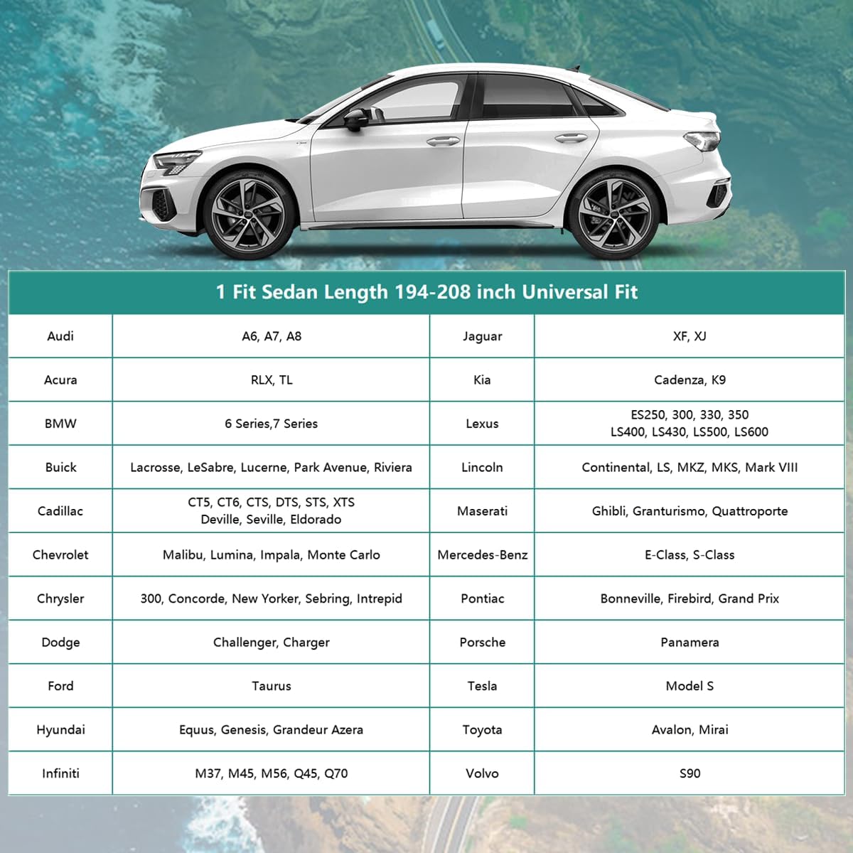 - 【Model Choice】GUNHYI automobiles cover is suitable for Sedan, Length 194 to 208 inch (Not for SUV Hatchback). For exmaple--Lexus ES350, Tesla Model S, Toyota Avalon, Hyundai Genesis, Jaguar XJ/XF, Lincoln MKZ, Dodge Charger, Chrysler 300, Ford Taurus, Buick Lacrosse/Lesabre, Cadillac Deville/Seville, Mercedes Benz S-Class etc.