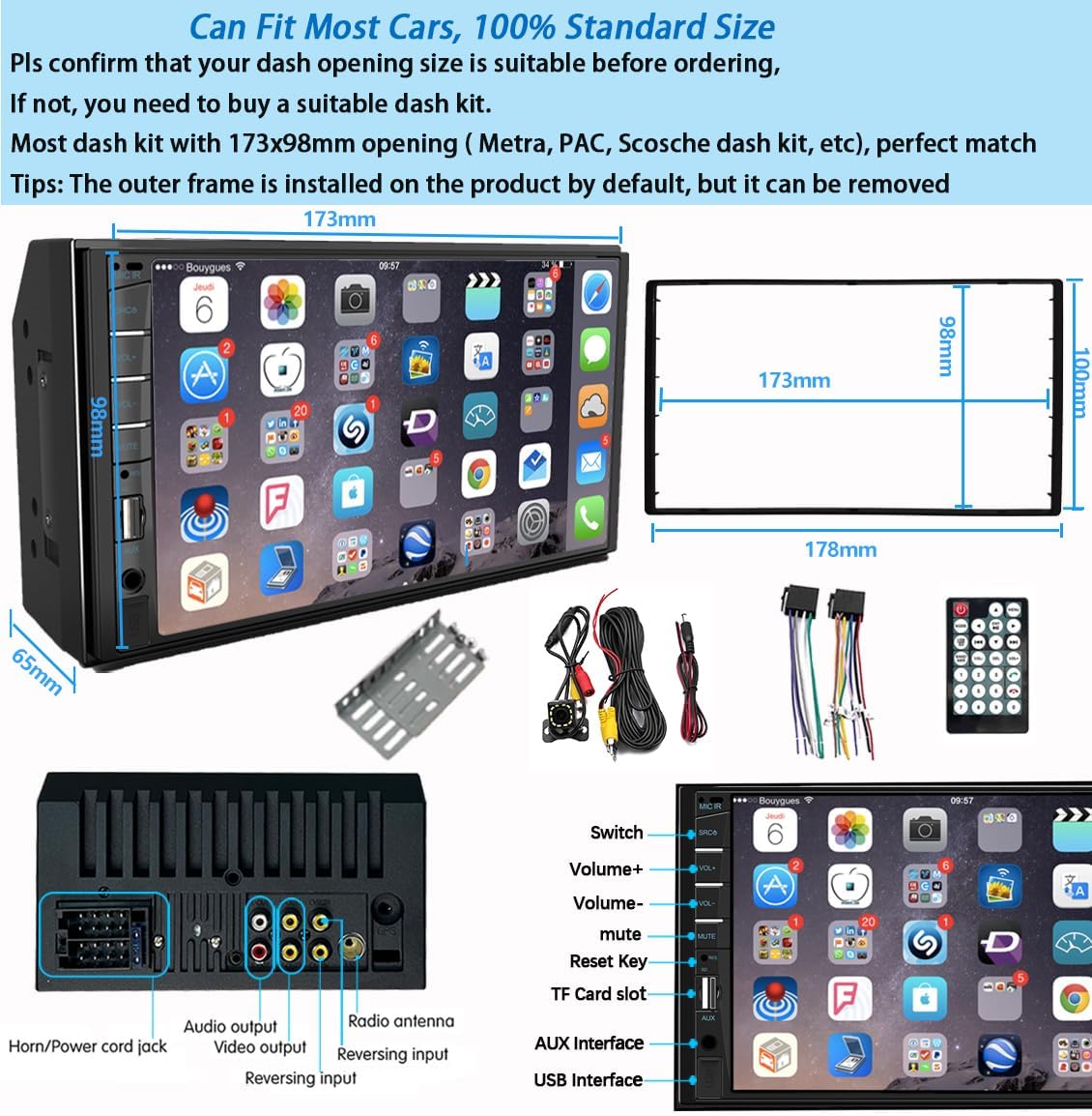 - 【Ultra-high Sound Quality】The Touchscreen Double Din Radio built-in professional chip, with 10 band EQ settings, can meet your needs for different sound quality, so as to enjoy excellent sound quality on the go.ine customer service if you have any questions about installation and wiring.