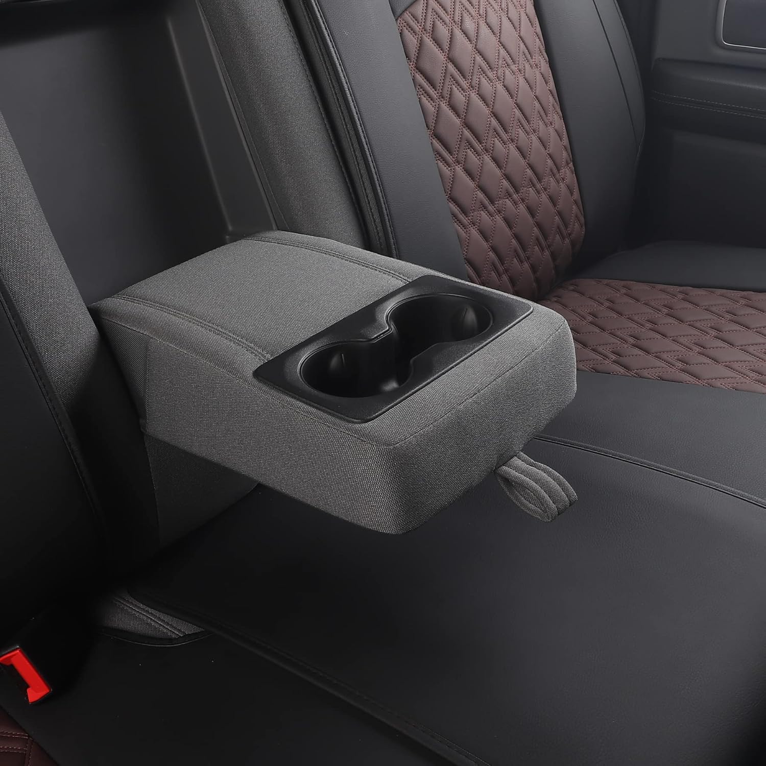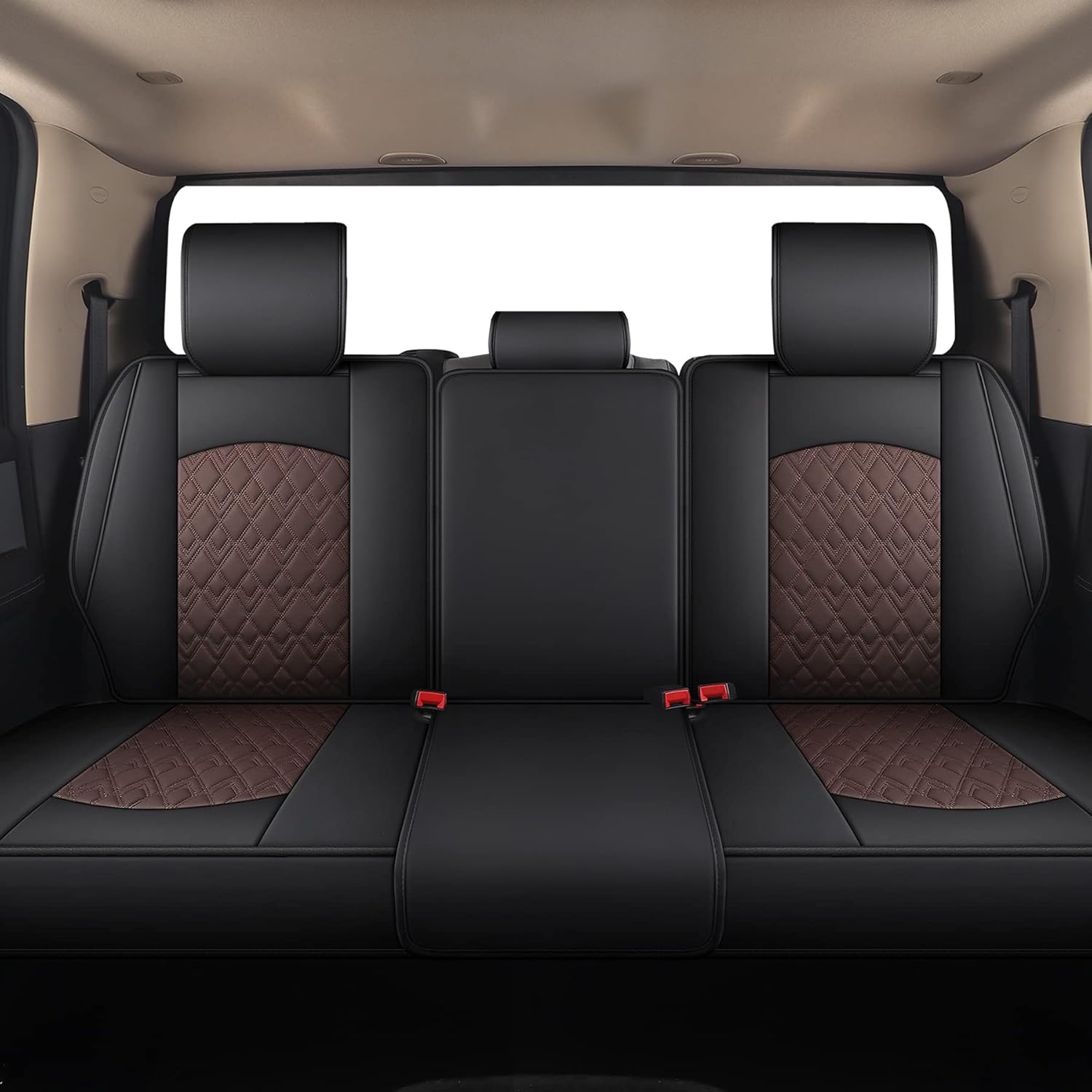 JOJOBAY Car Seat Covers for Dodge Ram,Fit Ram 2009-2025 1500/2500/3500 Pick-up Truck,Crew,Regular,Quad,Mega Cab,Waterproof Leather Automotive Interior Accessories(Rear Seat Cover,Black-Brown)
