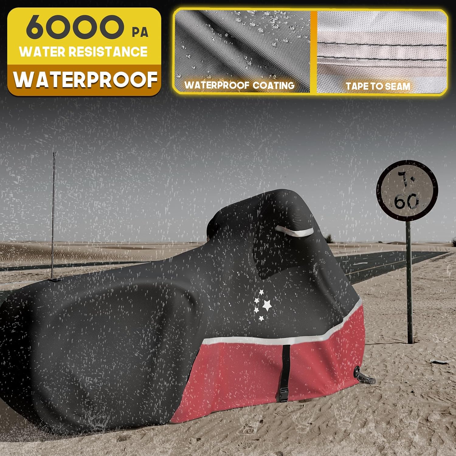 - Suitable for Most Motorcycle Touring: 107 "L x 39" W x 55 "H stereo cutting, and the widened rear cover design is suitable for most rear side boxes and motorcycle touring, such as Harley Davidson/Indian/Honda/BMW Touring Models.
