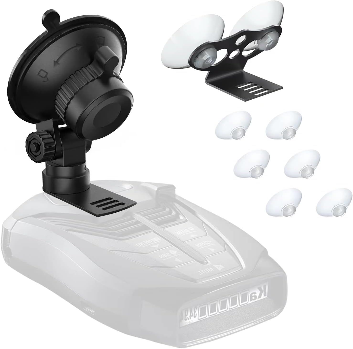 - Multiple ways of use: 1. The large suction cup bracket of the radar detector is used alone 2,Windshield Suction Cup Mount Holder can be used alone.The attached 6 suction cups will allow you to use it for many years,you’ll be worry-free