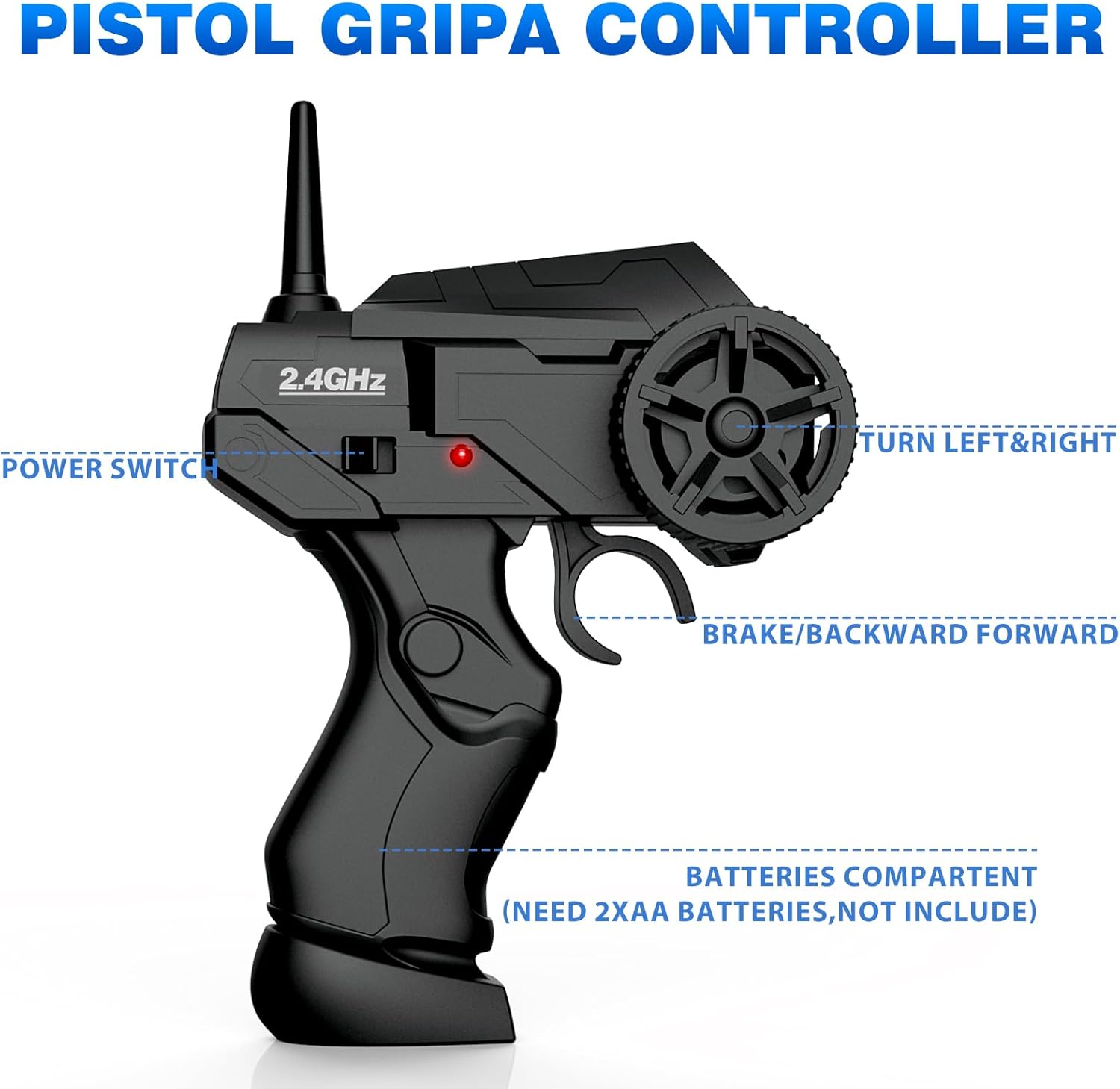 - 2.4GHz Remote Control System: The 2.4Ghz technology allows multiple remote control cars to be played together without interference with each other. The pistol griRemotep controlle is easy to master, help your kids develop their social and teamwork skills