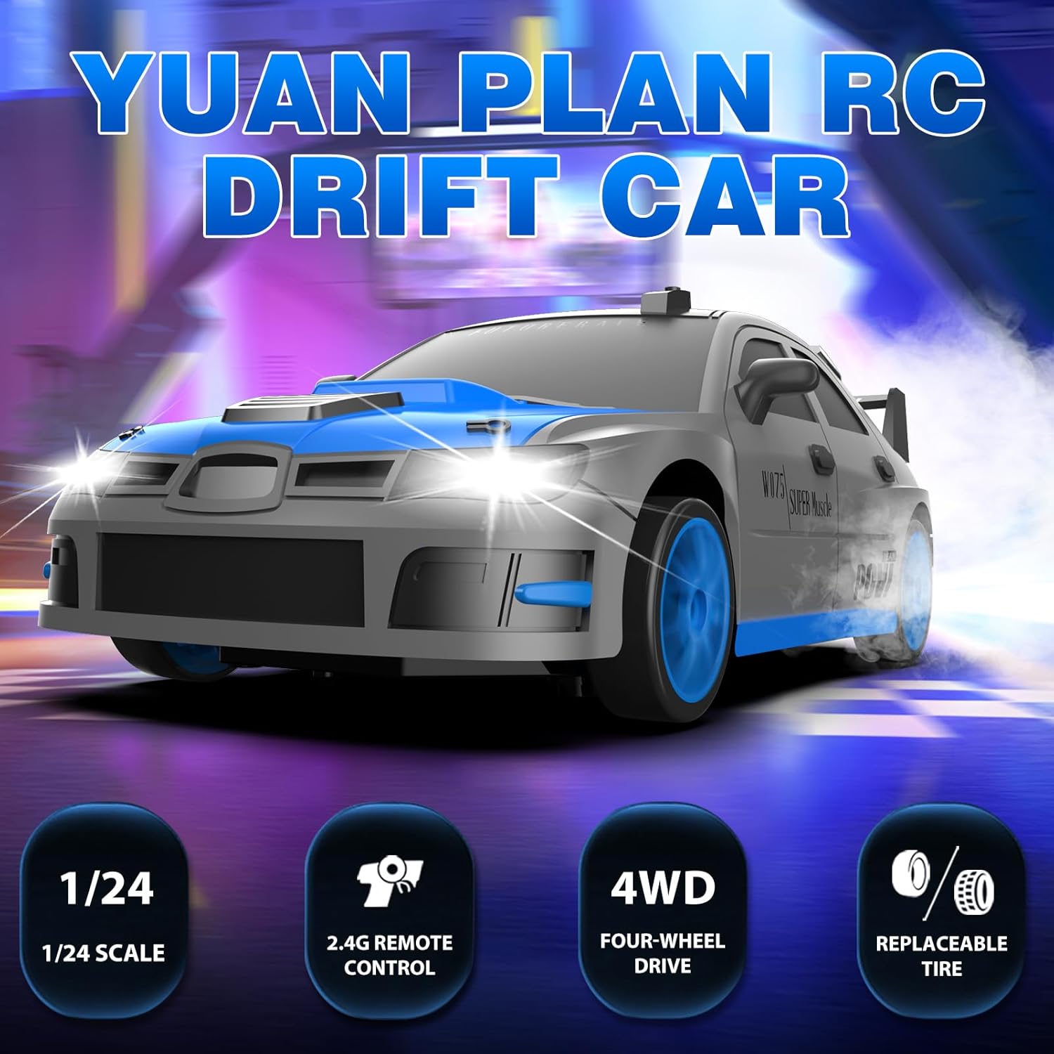 - Speedy Drift Car: YUAN PLAN 1:24 RC racing drift car powered by a strong motor, can reach a maximum speed of 15KM+/h, giving you a thrilling drift experience