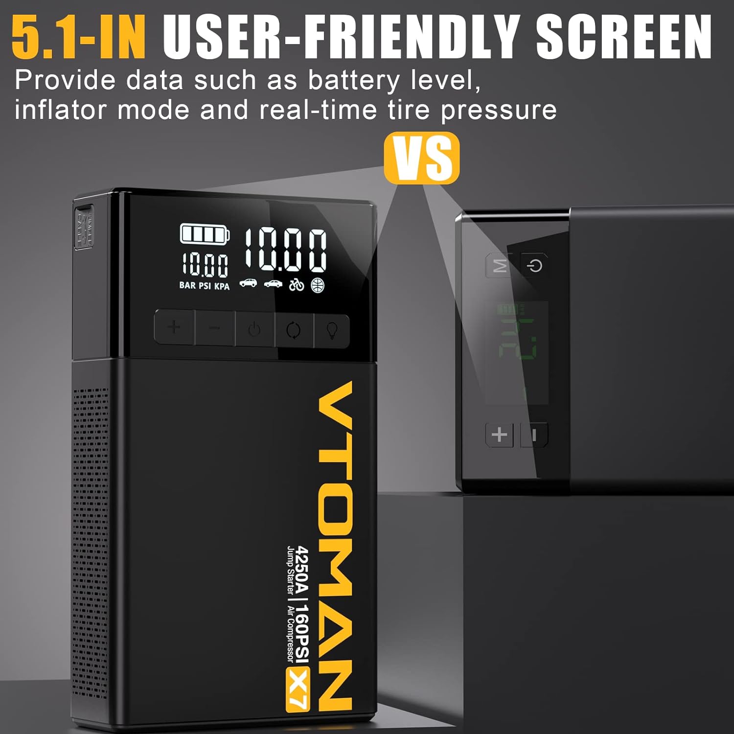 VTOMAN X7 Jump Starter with Air Compressor, 4250A Portable Car Jumper with 160PSI Digital Tire Inflator,12V Lithium Battery Charger Booster Box with Type-C Quick Charge (Up 10L Gas/10L Diesel Engine)
