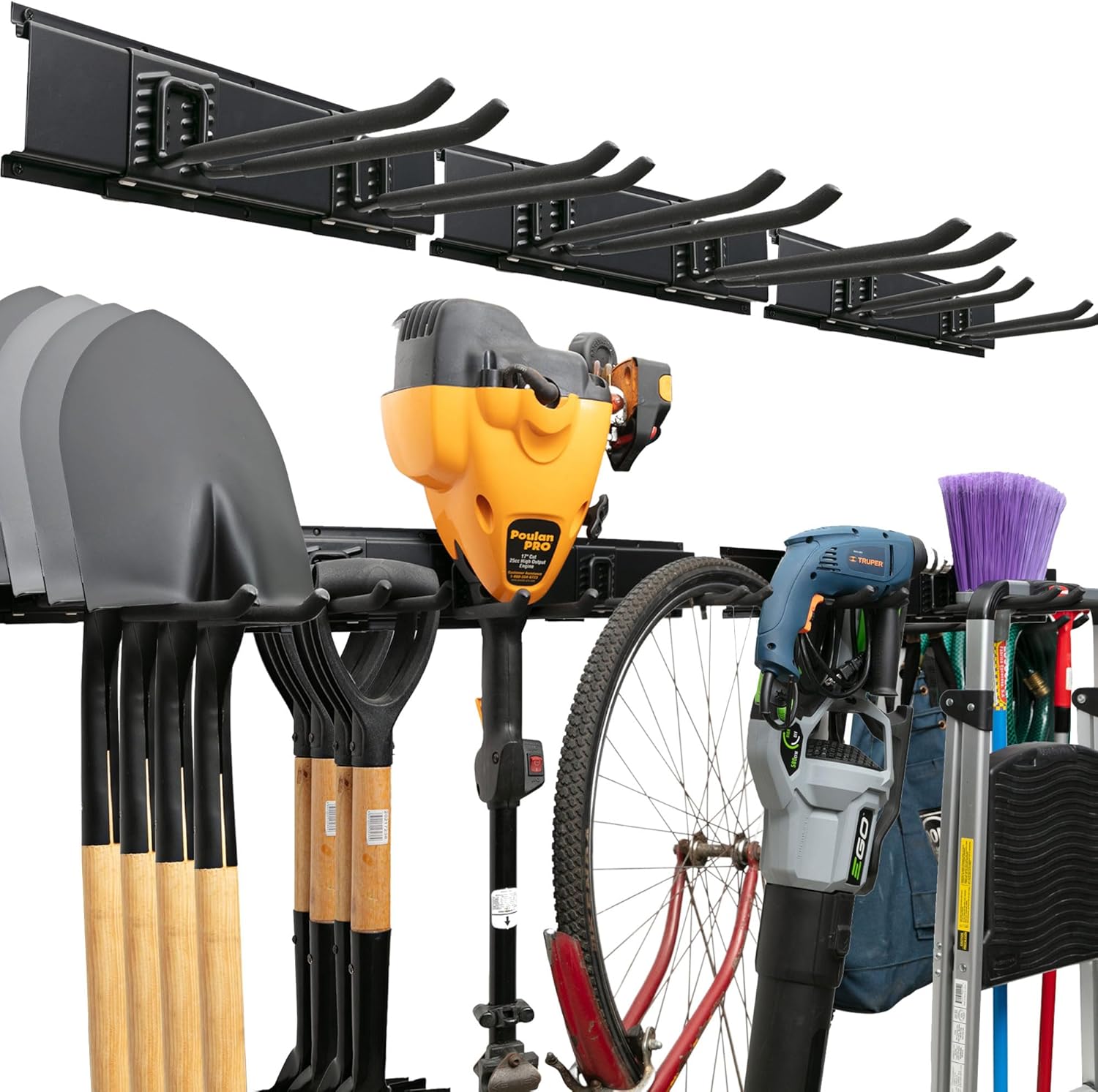 - Heavy-Duty Storage - Sturdy and durable design with a maximum capacity of 300lbs, capable of hanging a wide range of tools and equipment including shovels, brooms, rakes, power tools, folding chairs, sports gear, bikes, and more.