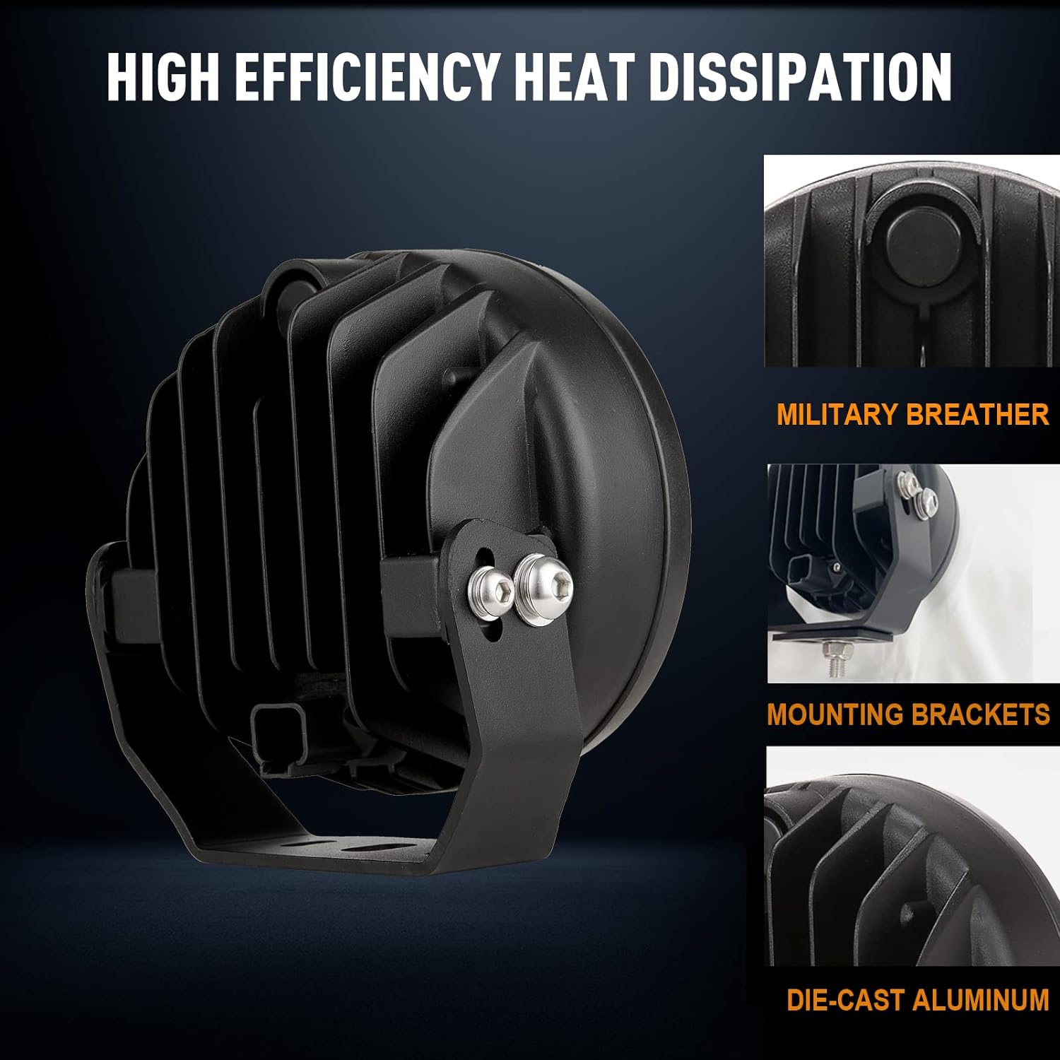- 【High standard waterproof grade】Products conform to IP68 and IP69K standard. Applied military breather design to prevent condensation and fogging. Lengthen the product life. Balance offroad lights’ differential pressure to achieve thermal balance is attained. Let the sealed lamp beads have better heat dissipation. Enhance the usage of reliability in extreme environment.