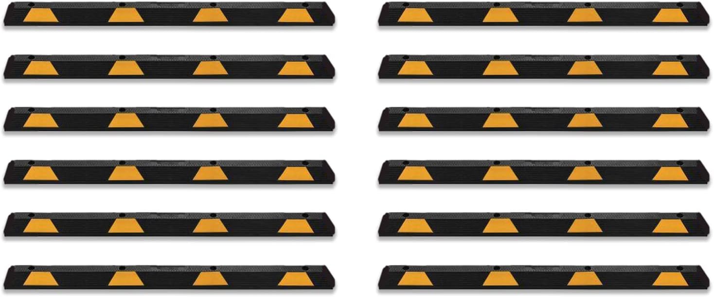 Zento Deals Rubber Parking Curb Garage Car Stopper - Parking Wheel Stopper Block 72” Wide Easy to Install, Black/Yellow Reflective Parking Block; for Car, Truck, Trailer and RV (Black/Yellow 12pack)